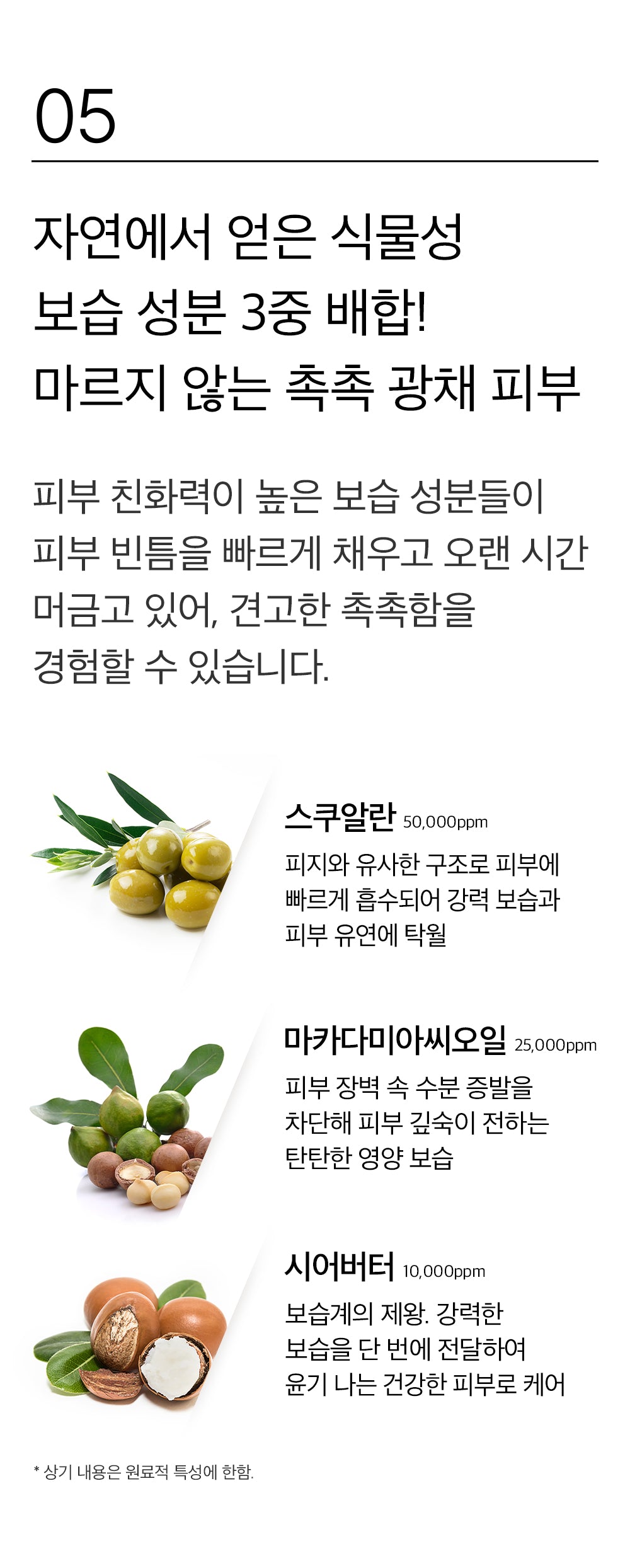 - Macadamia Seed Oil: Prevents moisture loss while nourishing and moisturizing the skin.