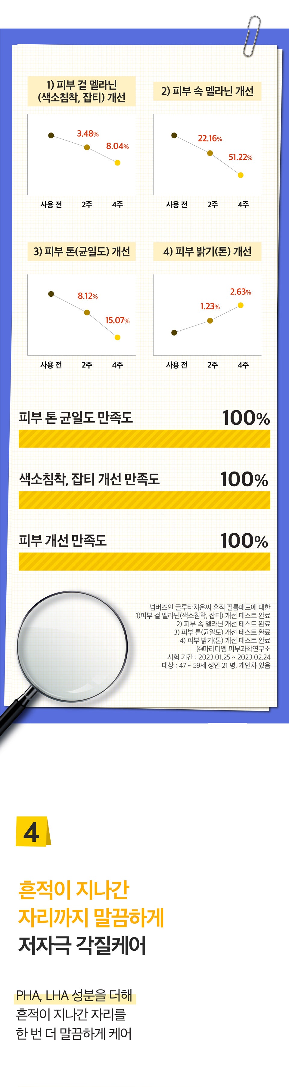 It has 100% satisfaction with the improvement in even skin tone, pigmentation, blemishes, and skin condition.