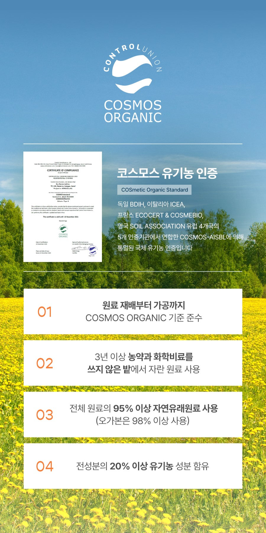 - COSMOS ORGANIC: Awarded the highest organic certification by COSMOS-AISBL, a coalition of five European agencies.