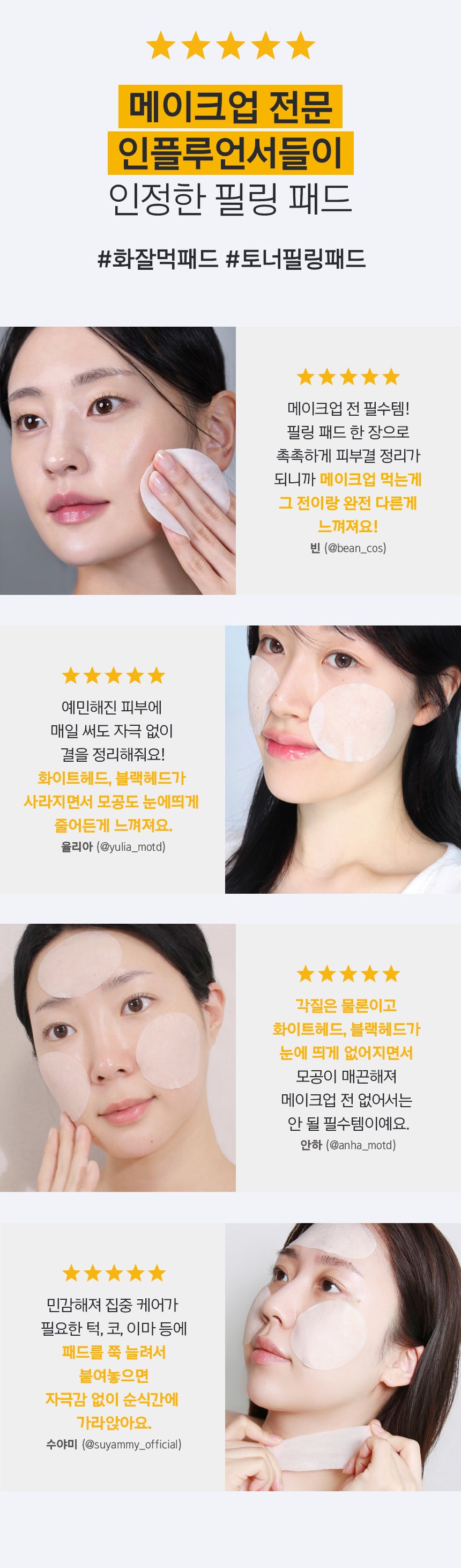 Consistent use of these pads visibly refines pore appearance, creating a smooth surface for makeup that lasts all day. Noticeable improvements include: