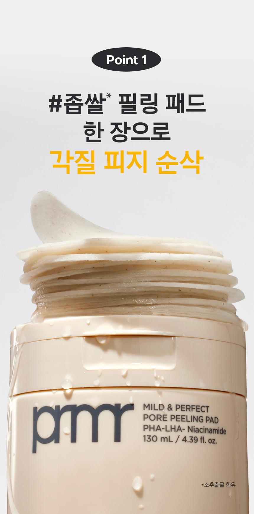 Introducing the all-new Mild & Perfect Pore Peeling Pads, designed to provide gentle yet effective peeling with a focus on pore care. Combining the exfoliating power of PHA, LHA, and Niacinamide, this dual-action pad offers both toning and peeling in one convenient step to leave your skin refined, clear, and ready for flawless makeup application.