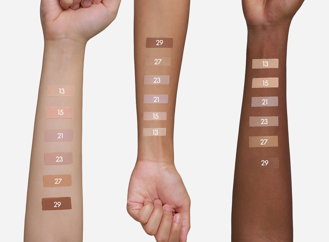 Use a small amount to create a natural, semi-matte finish. Layer as needed for more coverage while maintaining a lightweight feel.