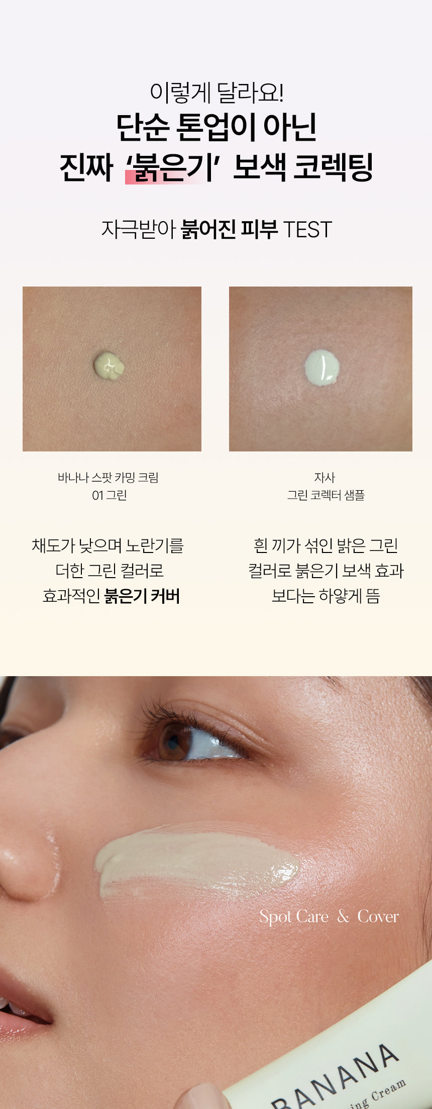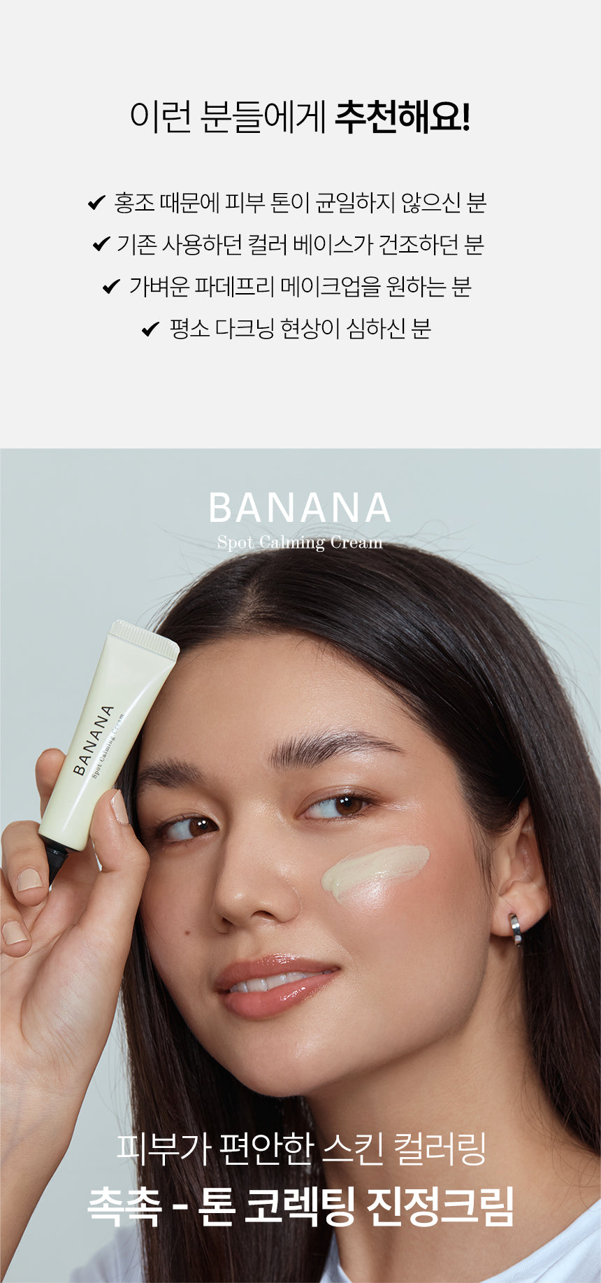 BANANA Spot Calming Cream 01 Green isn’t just a product—it’s a soothing solution for red, sensitive skin. Hydrate, calm, and perfect your complexion in one step. Perfect for anyone seeking a lightweight, fuss-free correction with pro-level results.