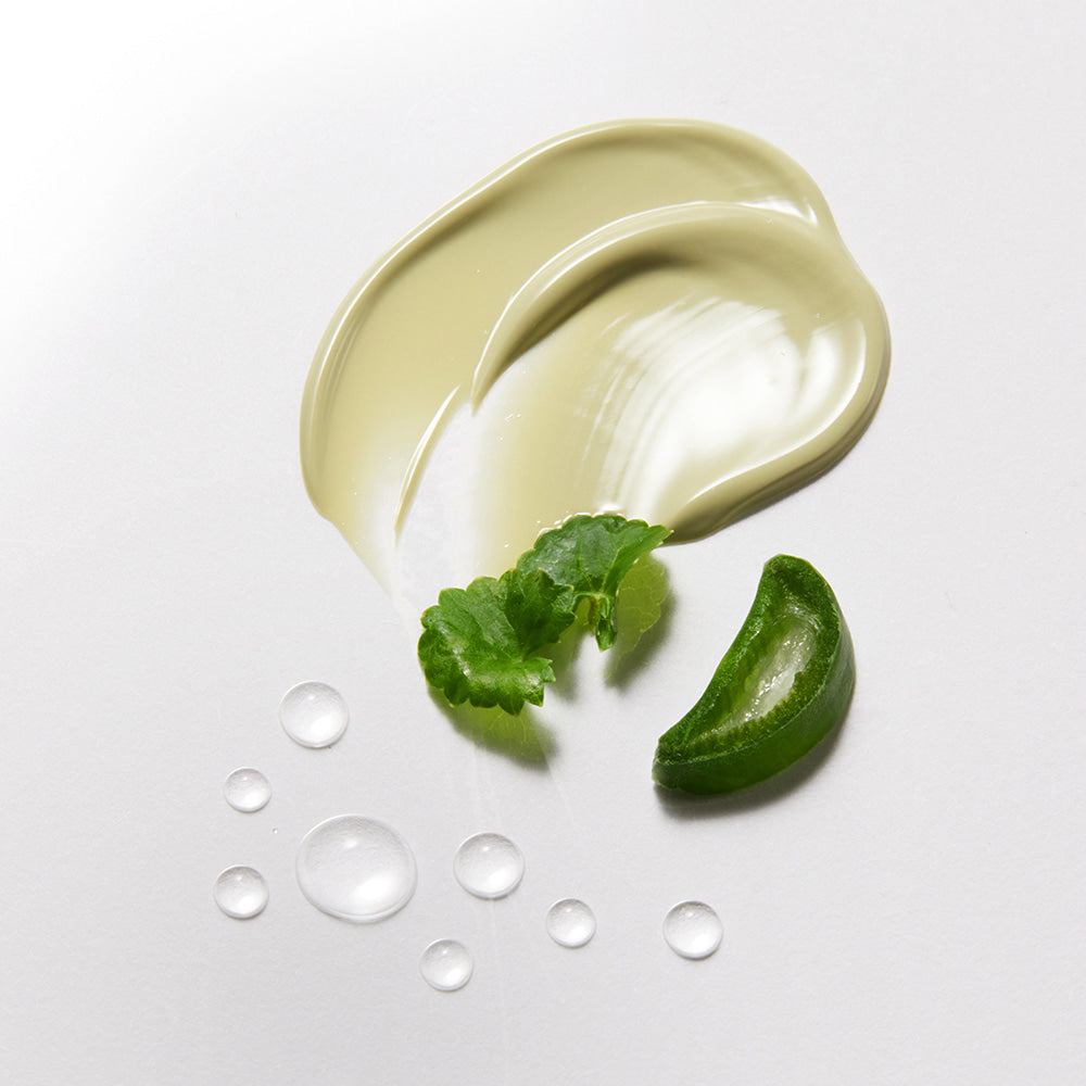 The refreshing green cream texture melts into the skin, leaving it plump and hydrated without any sticky residue.