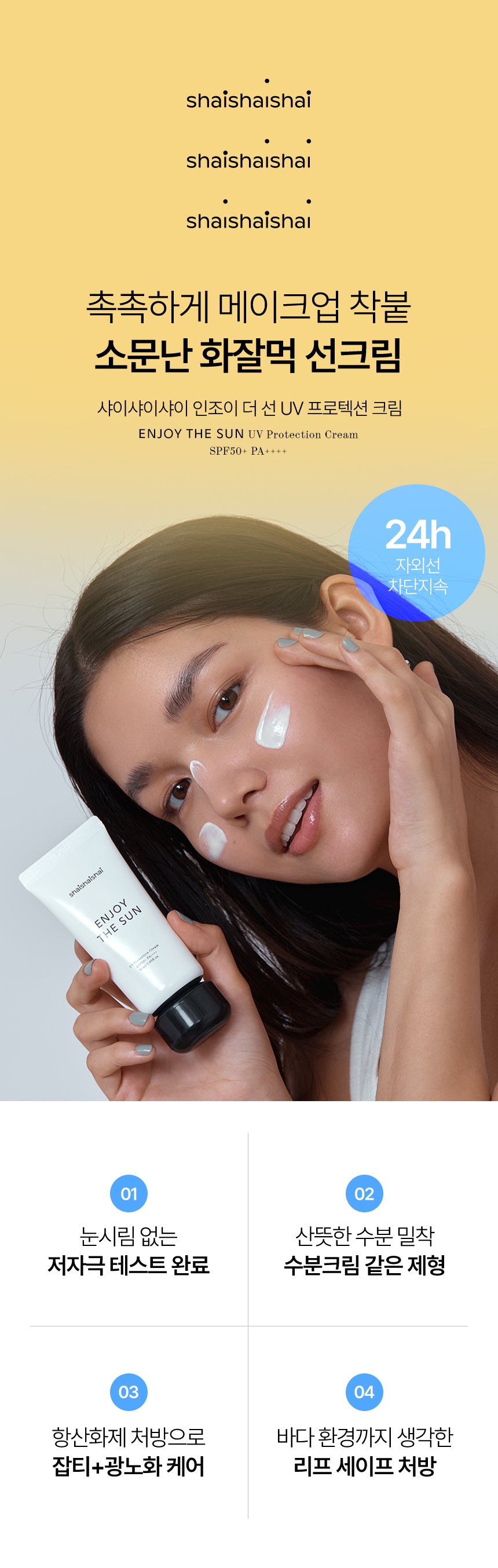 shaishaishai Enjoy the Sun UV Protection Cream is the ultimate solution! With a silky-smooth finish and zero stickiness, it creates the perfect canvas for makeup while delivering unmatched sun care.