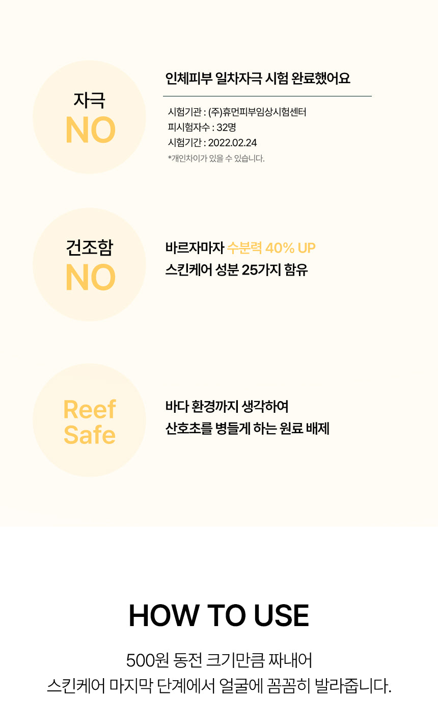 - At the final step of your skincare routine, apply a coin-sized amount (about the size of a 500 KRW coin).