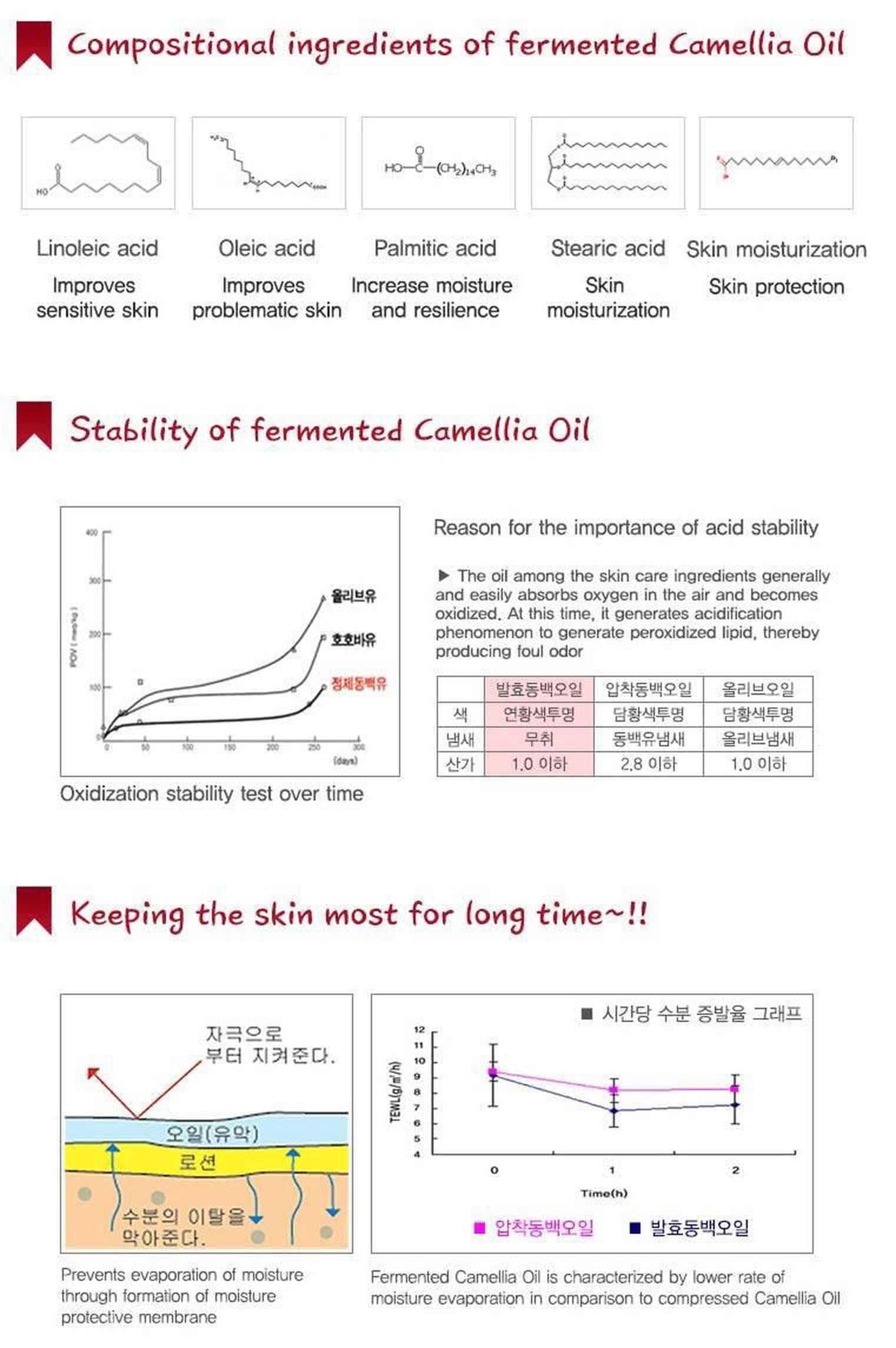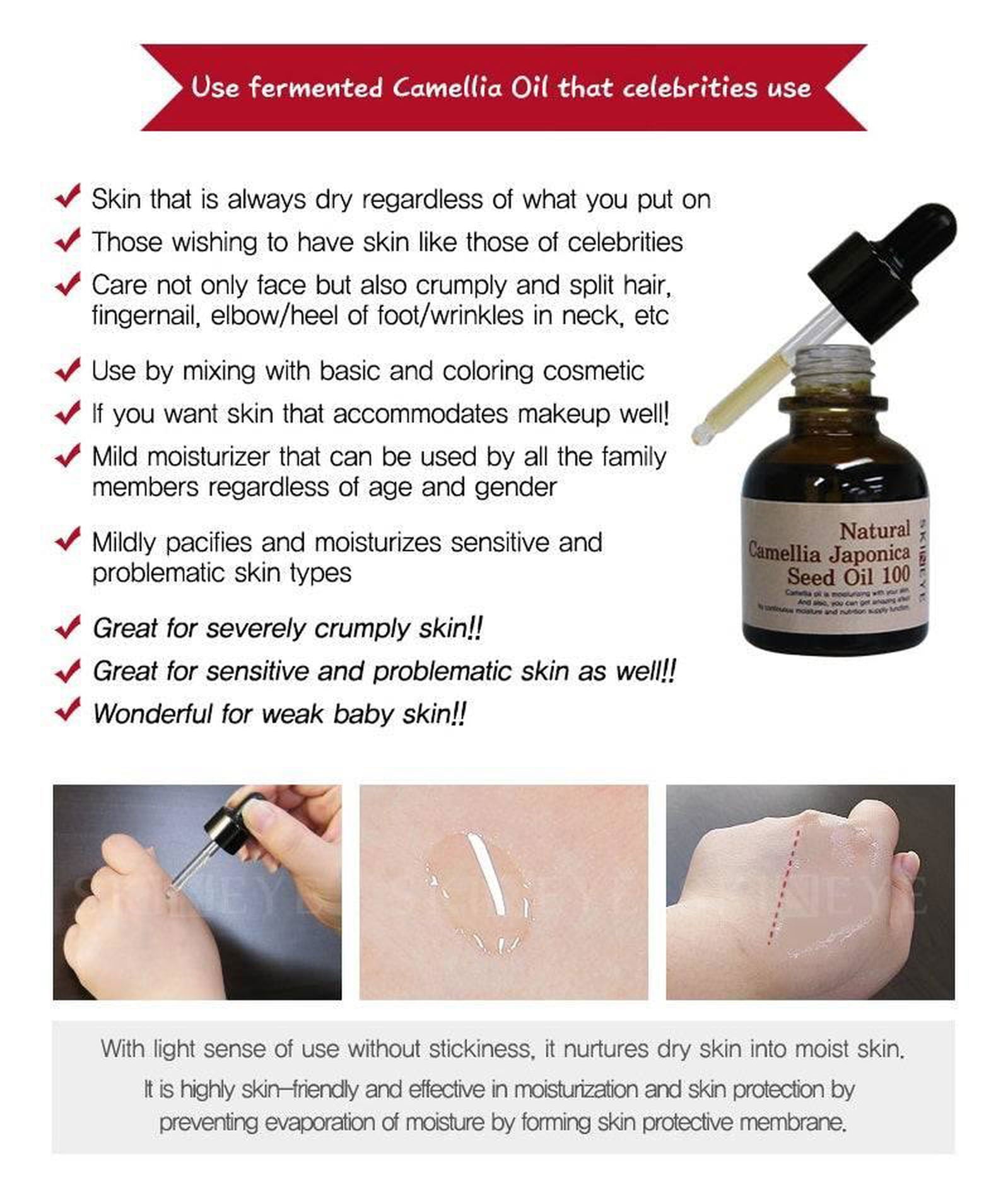 – Camellia oil is moisturizing with your skin and also, you can get amazing effect by continuous moisture and nutrition supply function.