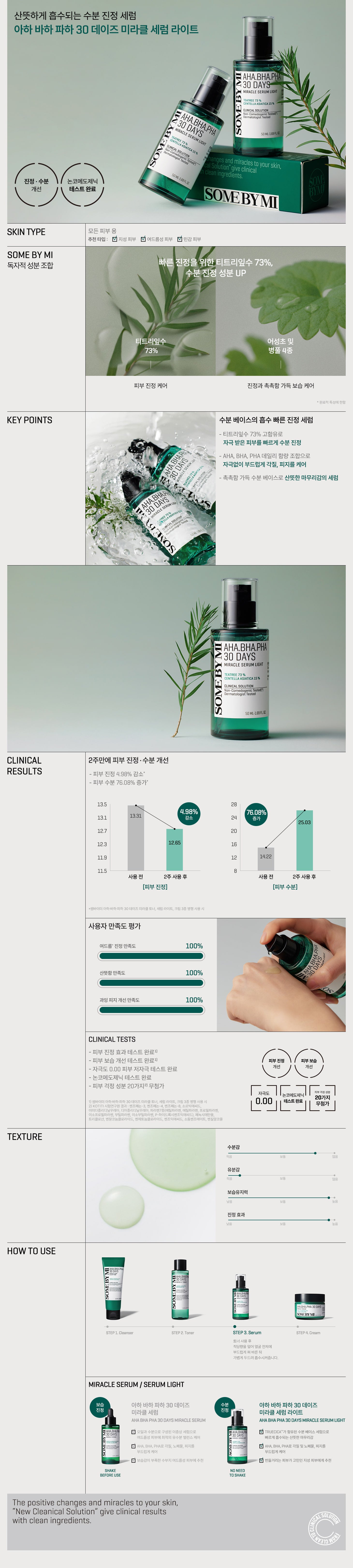 Discover the transformative power of SOME BY MI AHA BHA PHA 30 Days Miracle Serum Light, a refreshing and quickly absorbed moisture calming serum designed to soothe your skin with the purity of nature.
