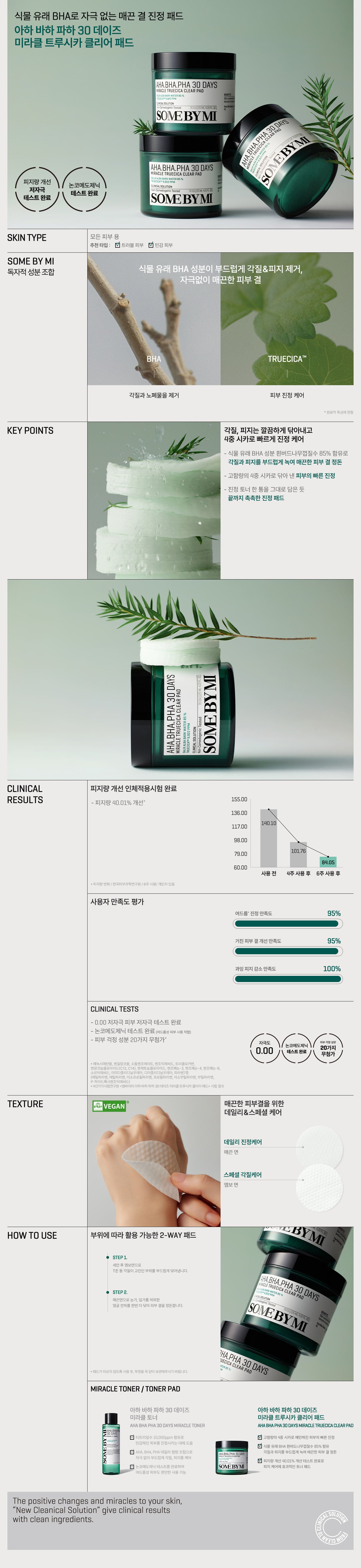 SOME BY MI AHA BHA PHA 30 Days Miracle Truecica Clear Pad 125ml 70ea