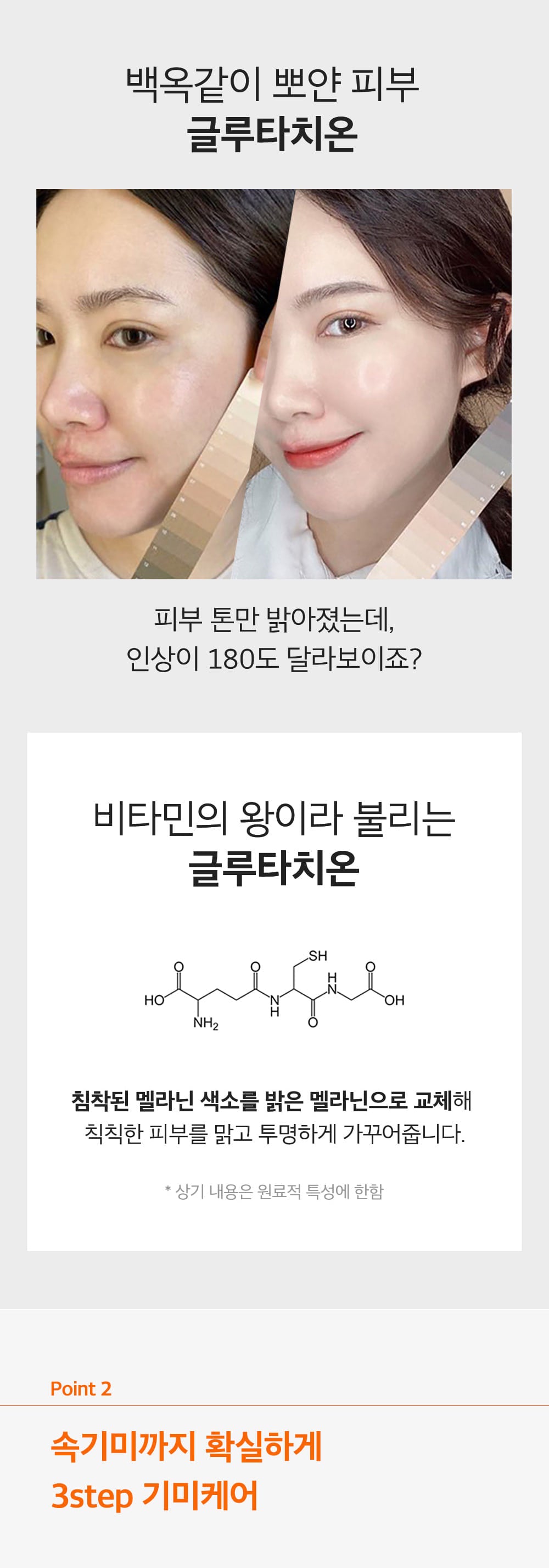 Glutathione, renowned as the king of antioxidants, transforms deposited melanin into bright melanin, enhancing skin clarity and visibly improving complexion.