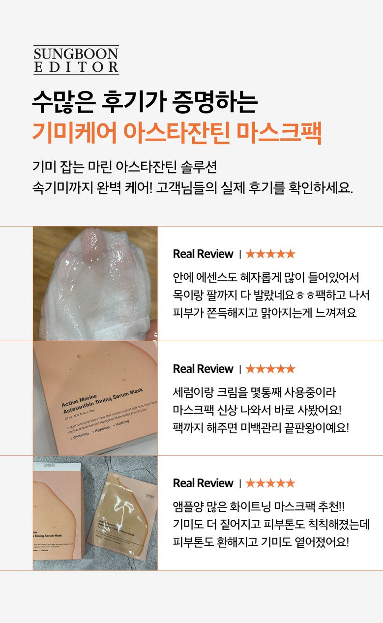 11 reviews for SUNGBOON EDITOR Active Marine Astaxanthin Toning Serum Mask 23ml*10pack