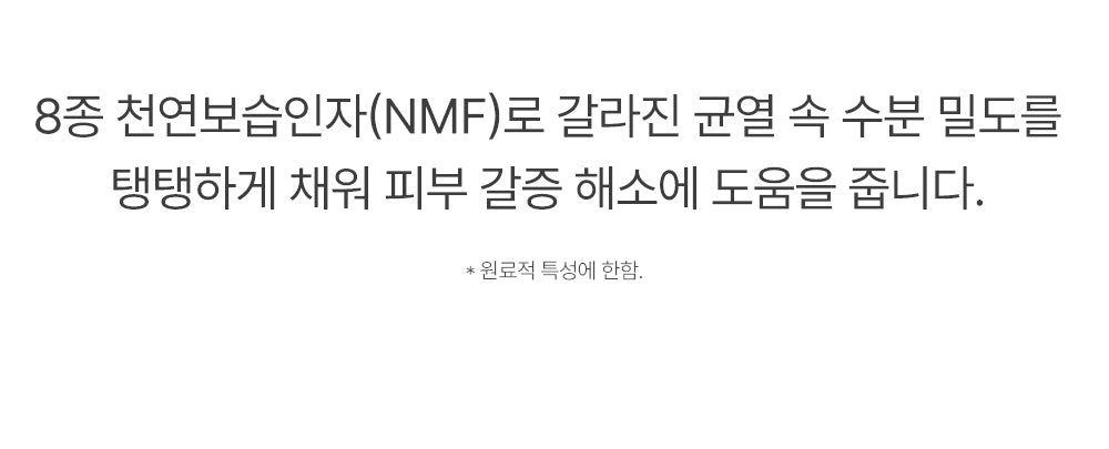 - 8 Natural Moisturizing Factors: Provides intensive hydration and reinforces the skin’s moisture barrier.