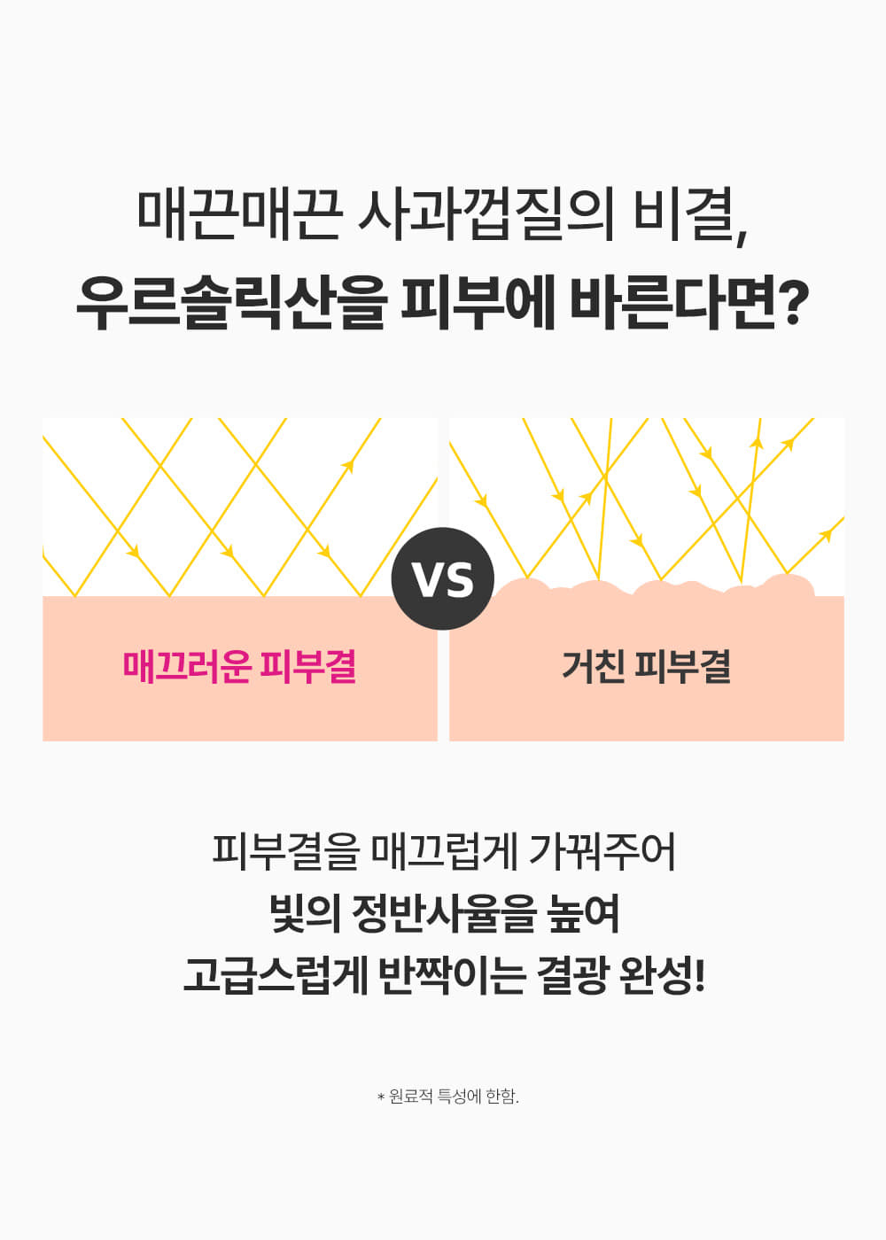 Ursolic acid, a component more powerful than retinol and patented for its efficacy, plays a pivotal role in improving skin texture. Extracted directly from apple peels, it aids significantly in skin texture enhancement, offering a polished, flawless finish.