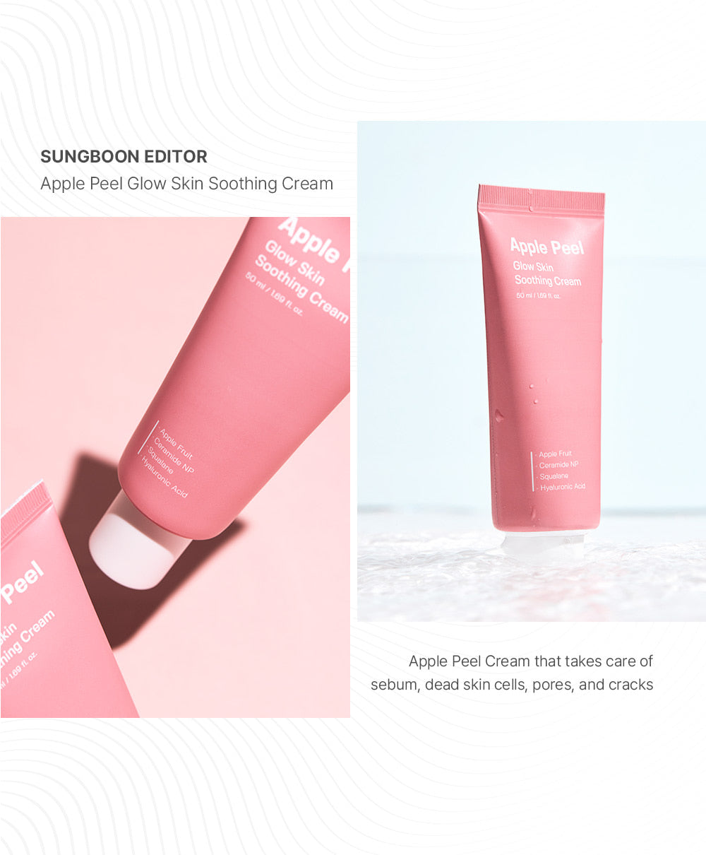 Indulge in the essence of nature with SUNGBOON EDITOR Apple Peel Glow Skin Soothing Cream, your daily ally for a visibly refined and hydrated complexion.