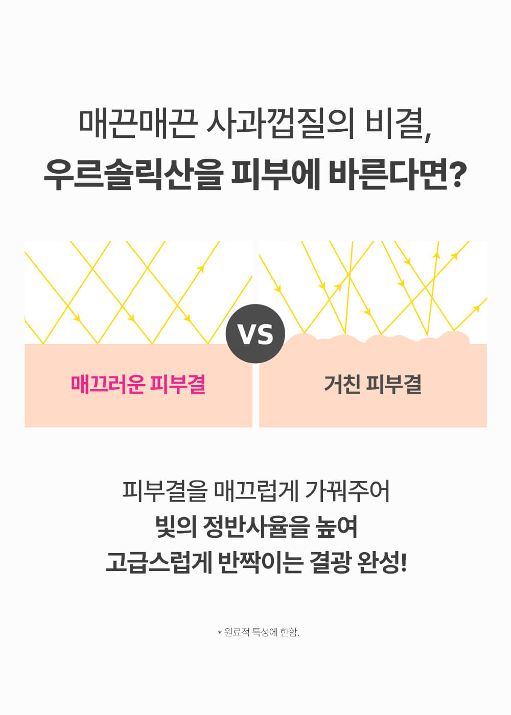 Experience the soothing power of the patented ursolic acid extracted from smooth apple peels. This ingredient transforms rough skin into a soft, smooth complexion without irritation.