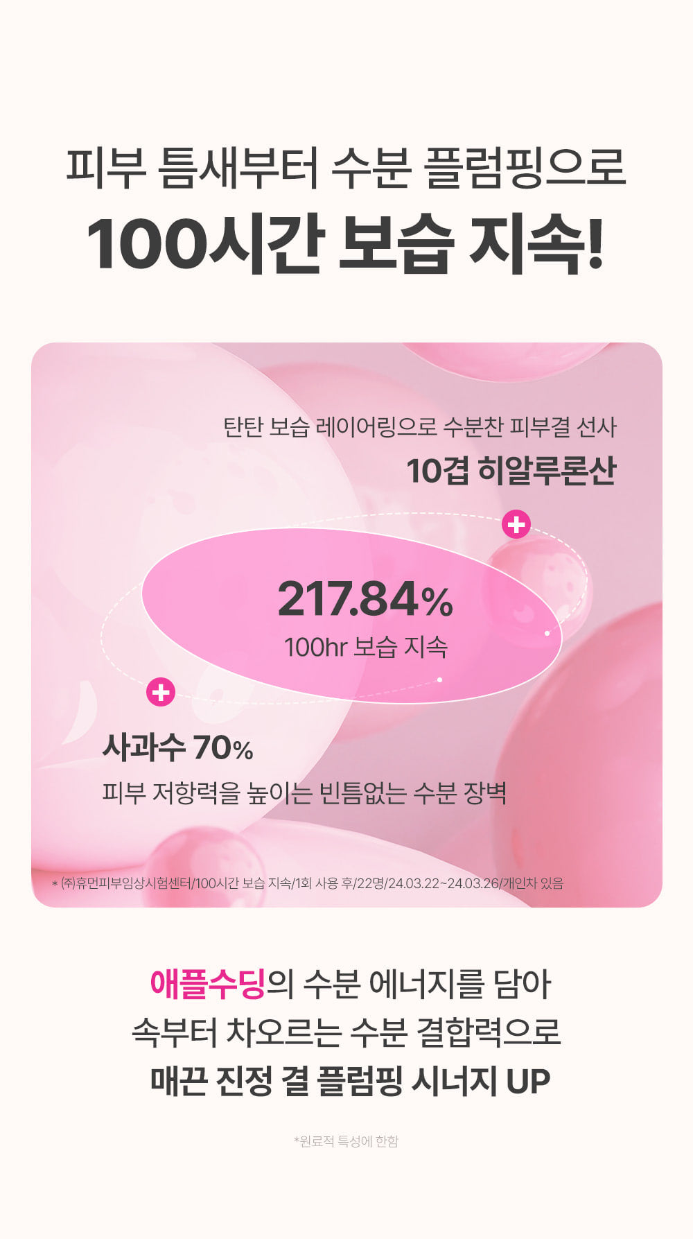 Experience up to 100 hours of moisture plumping. The unique apple soothing complex deeply hydrates, increasing the skin’s ability to retain moisture and enhancing smoothness for a plump appearance.