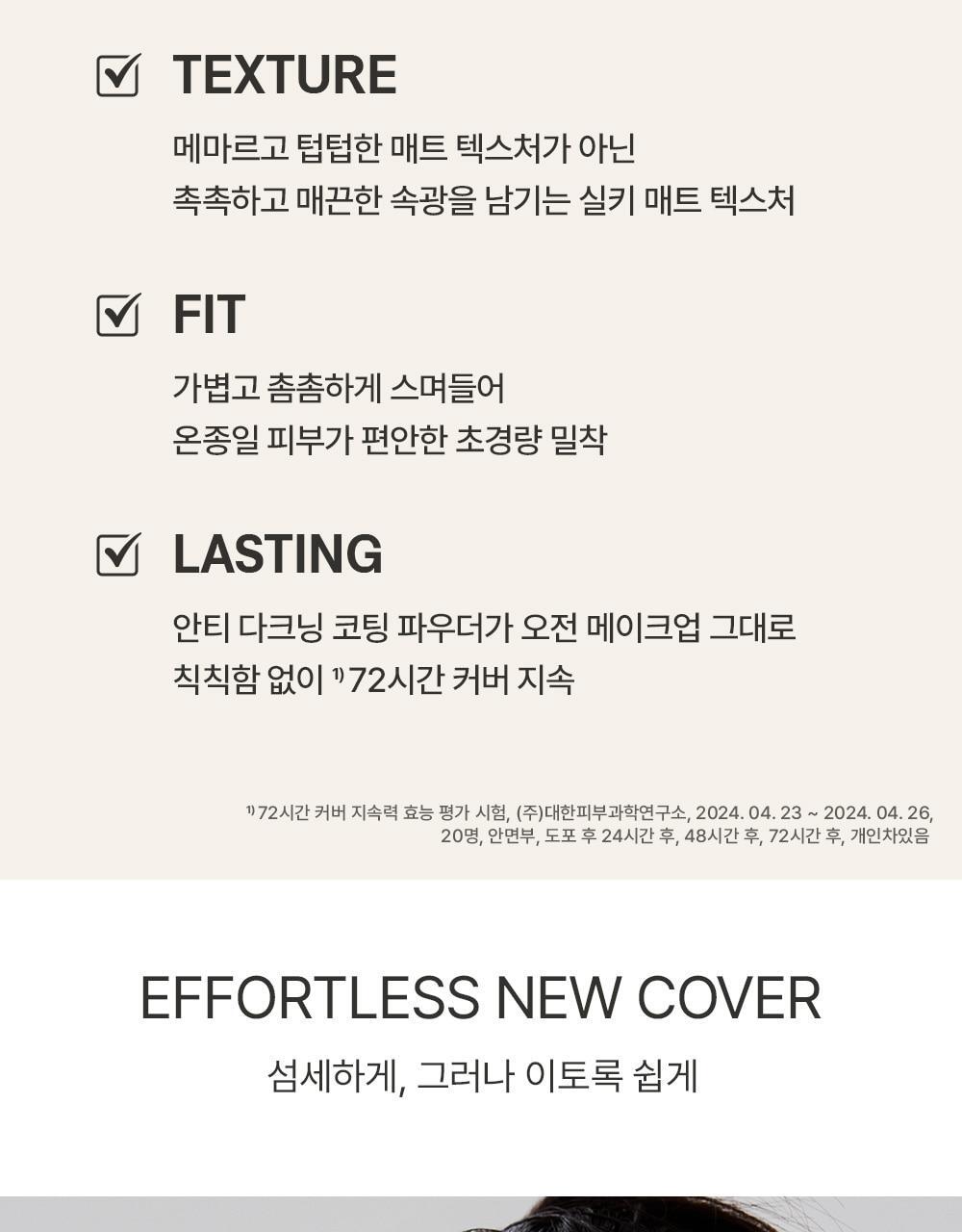 Perfect Coverage: This product offers exceptional coverage for blemishes, redness, pores, and dullness. The unique Triple Powder + Triple Layer formula uses three sizes of cover powder to seamlessly hide skin irregularities, from minor blemishes to fine wrinkles.