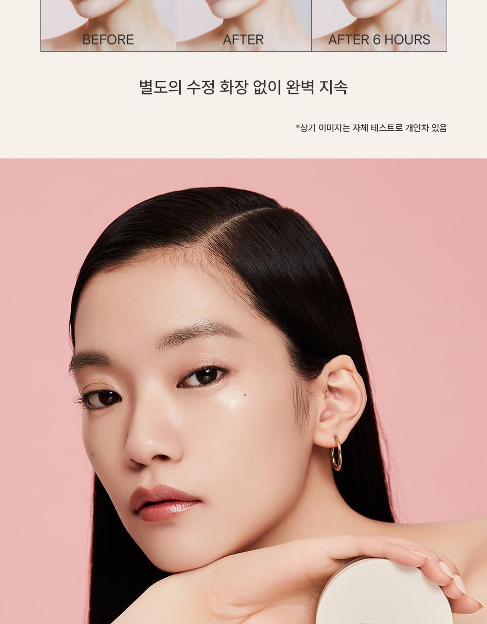 Non-Tight Skincare Cushion: This cushion contains moisturizing ingredients to maintain a flexible and comfortable skin condition. It’s enriched with low molecular hyaluronic acid to provide long-lasting hydration and a Natural Moisturizing Factor (NMF) Complex to prevent moisture loss.