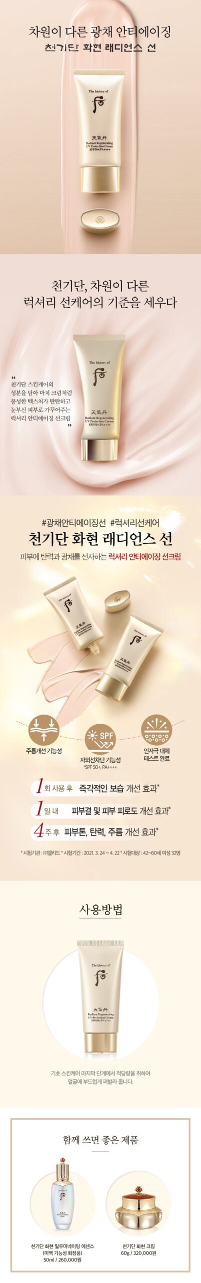 * A luxury anti-aging sunscreen that contains Cheongidan skincare ingredients and has a rich, cream-like texture that creates firm and dazzling skin.