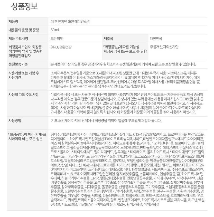 * A luxury anti-aging sunscreen that contains Cheongidan skincare ingredients and has a rich, cream-like texture that creates firm and dazzling skin.