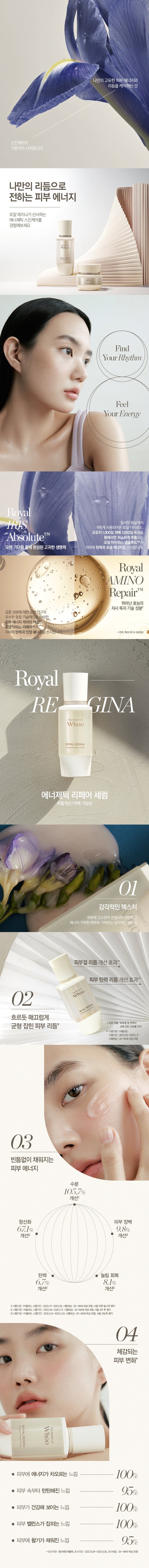 Royal Amino Repair™, the core of skin energy care, completed through long-term research on royal ingredients and excellent fusion technology, provides elasticity and soothing energy to the skin.