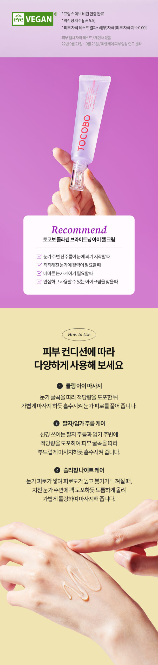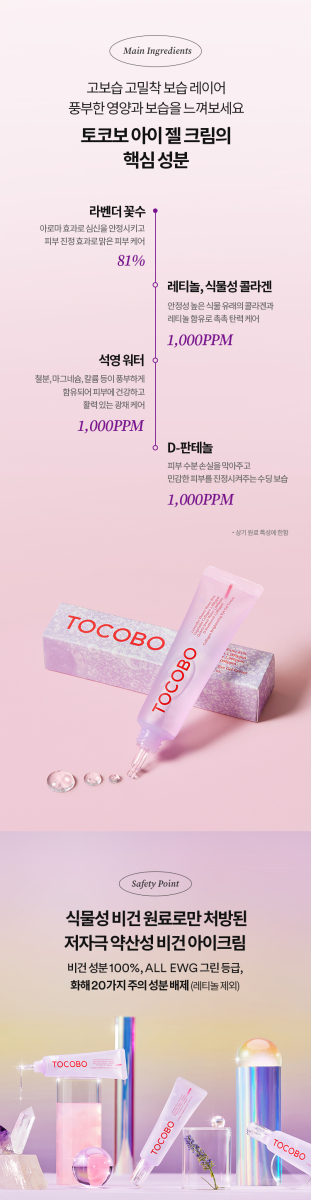 لتكون عينيك متجددة وتضيء بشعاعٍ شبابي، يأتي كريم TOCOBO بعناصر غنية. بعد أسبوع واحد من استخدامه مع تدليك لطيف يوميًا، لم أعد قلقًا بشأن الانتفاخات. فعلاً يوفر راحة وتألق!