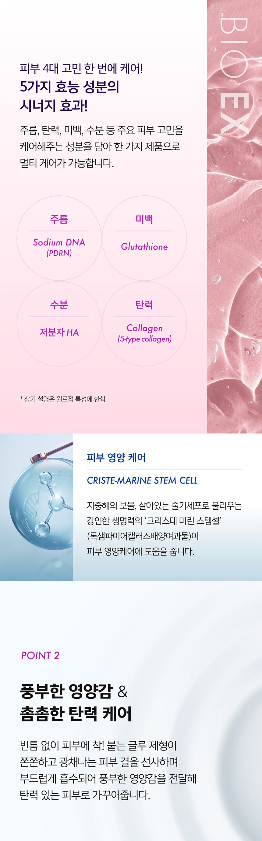Elasticity and Radiance Care Elevate your skin’s firmness and glow with our BIO EX solution, designed for intensive elasticity and radiance enhancement. This product targets facial wrinkles and offers effective lifting care, boosting the density and health of your skin.