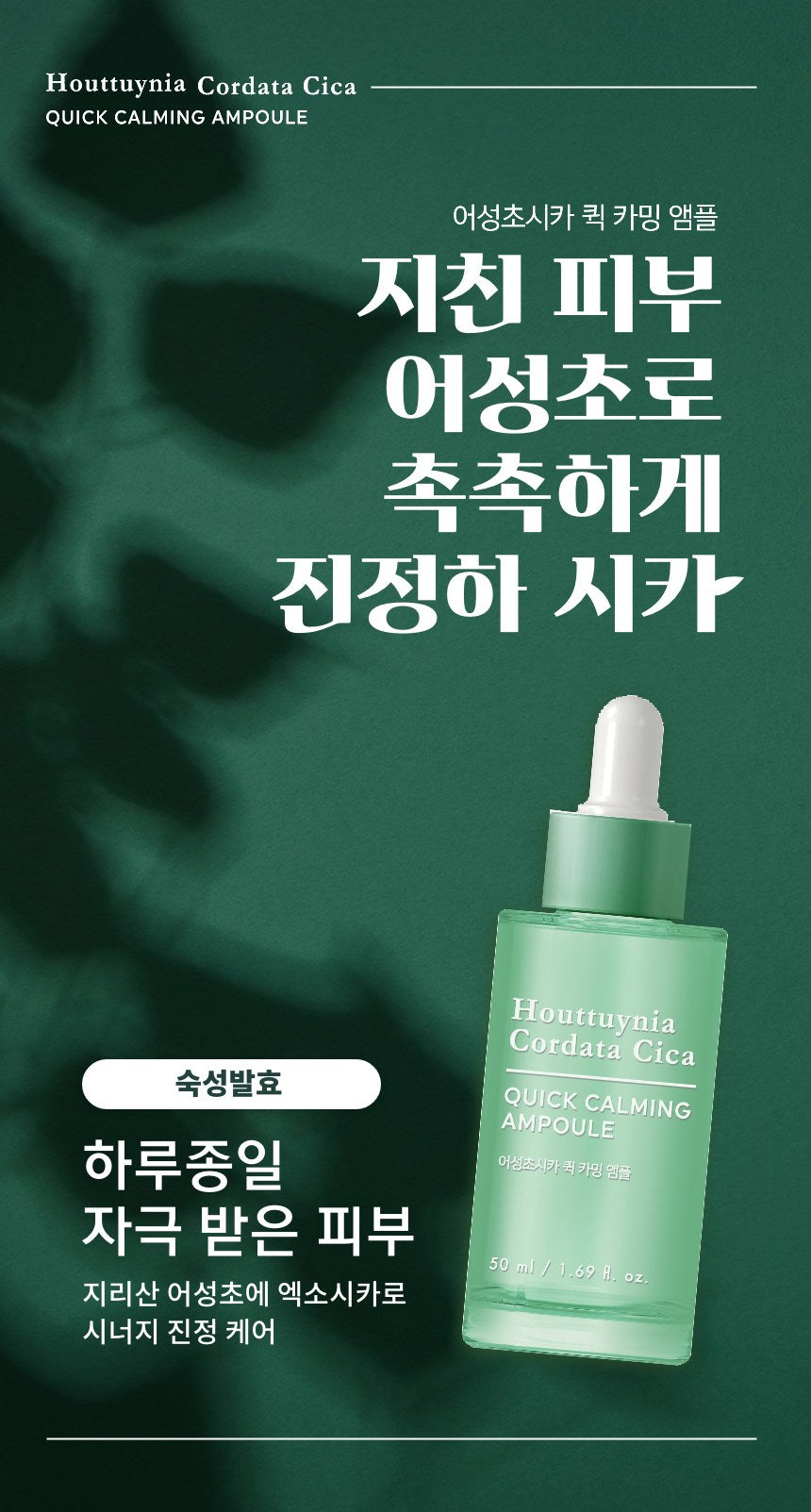 Houttuynia cordata quick calming line that provides soothing care with aged and fermented Houttuynia cordata from Jiri and exocica ingredients