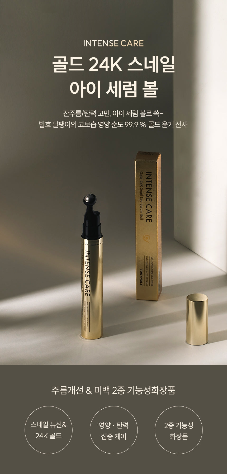The TONYMOLY Intense Care Gold 24K Snail Eye Serum Ball has transformed my under-eye area remarkably. The combination of snail mucin and pure gold in this serum truly works wonders for elasticity and hydration. After using it consistently for three weeks, I noticed a significant reduction in fine lines and a brighter appearance. The applicator ball is also unique; it provides gentle cooling which helps reduce puffiness while applying the product. This luxurious feel makes my morning routine more enjoyable.