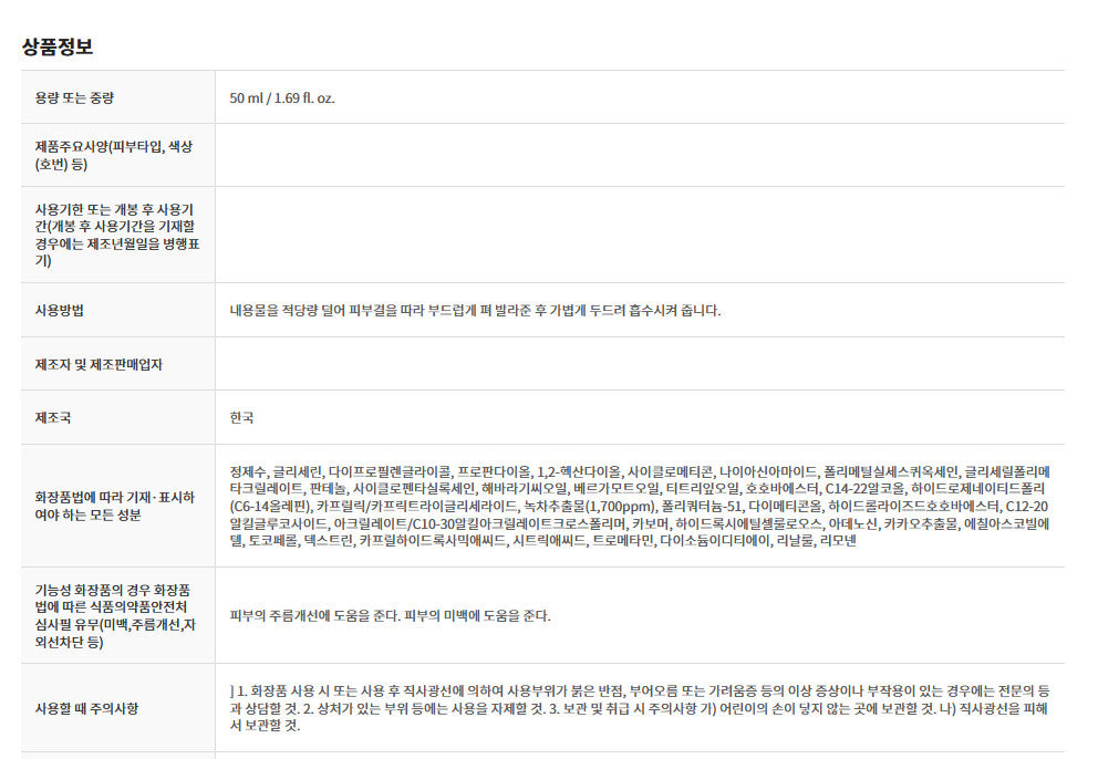 - Intense Moisturization: Provides deep hydration to strengthen the skin barrier, improving elasticity and diminishing the appearance of wrinkles.