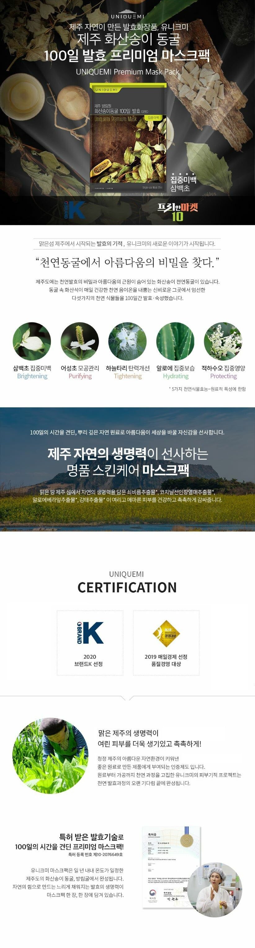 UNIQUEMI Jeju Banglimwon Volcanic Song Cave 100-day Fermentation Intensive Whitening Mask Pack (Sambaekcho) 5pack*25ml