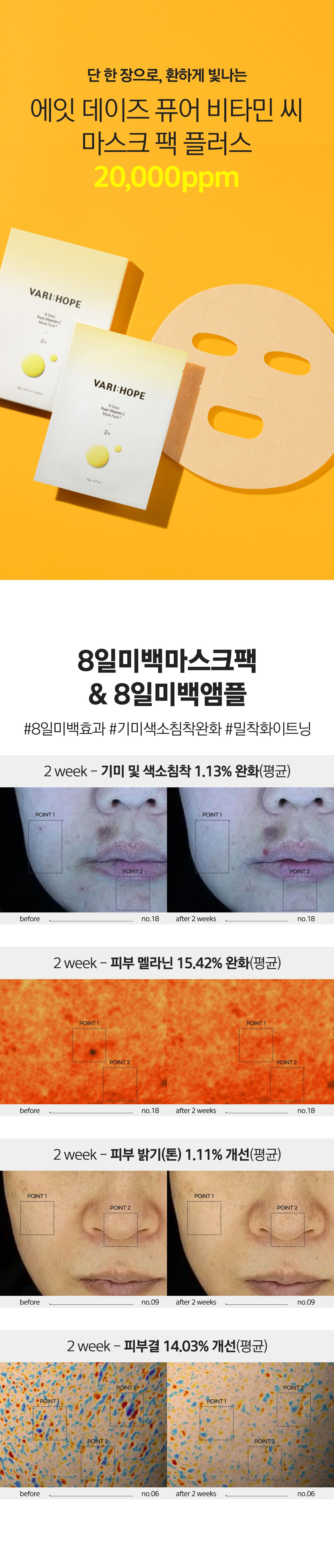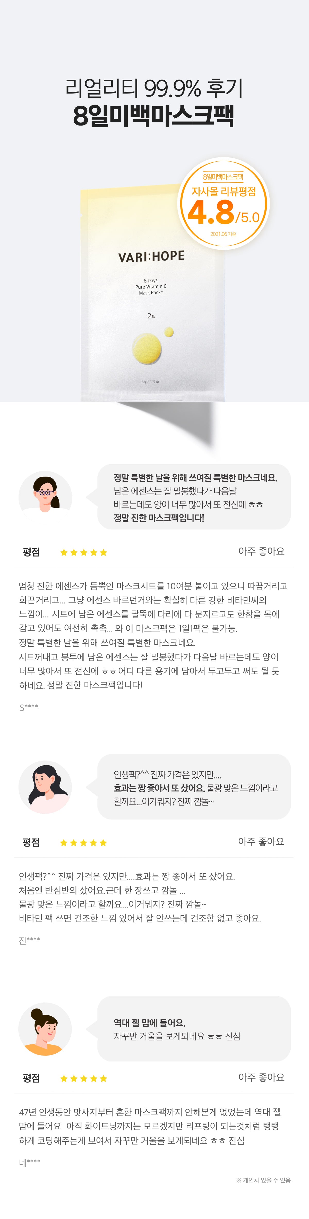 9 reviews for VARI:HOPE 8 Days Pure Vitamin C Mask Pack+ 22g*5packs