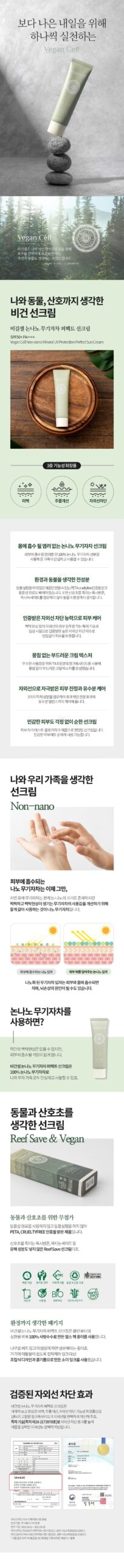 Vegan Cell Non-nano Mineral UV Protection Perfect Sun Cream SPF+ PA++++ 50g