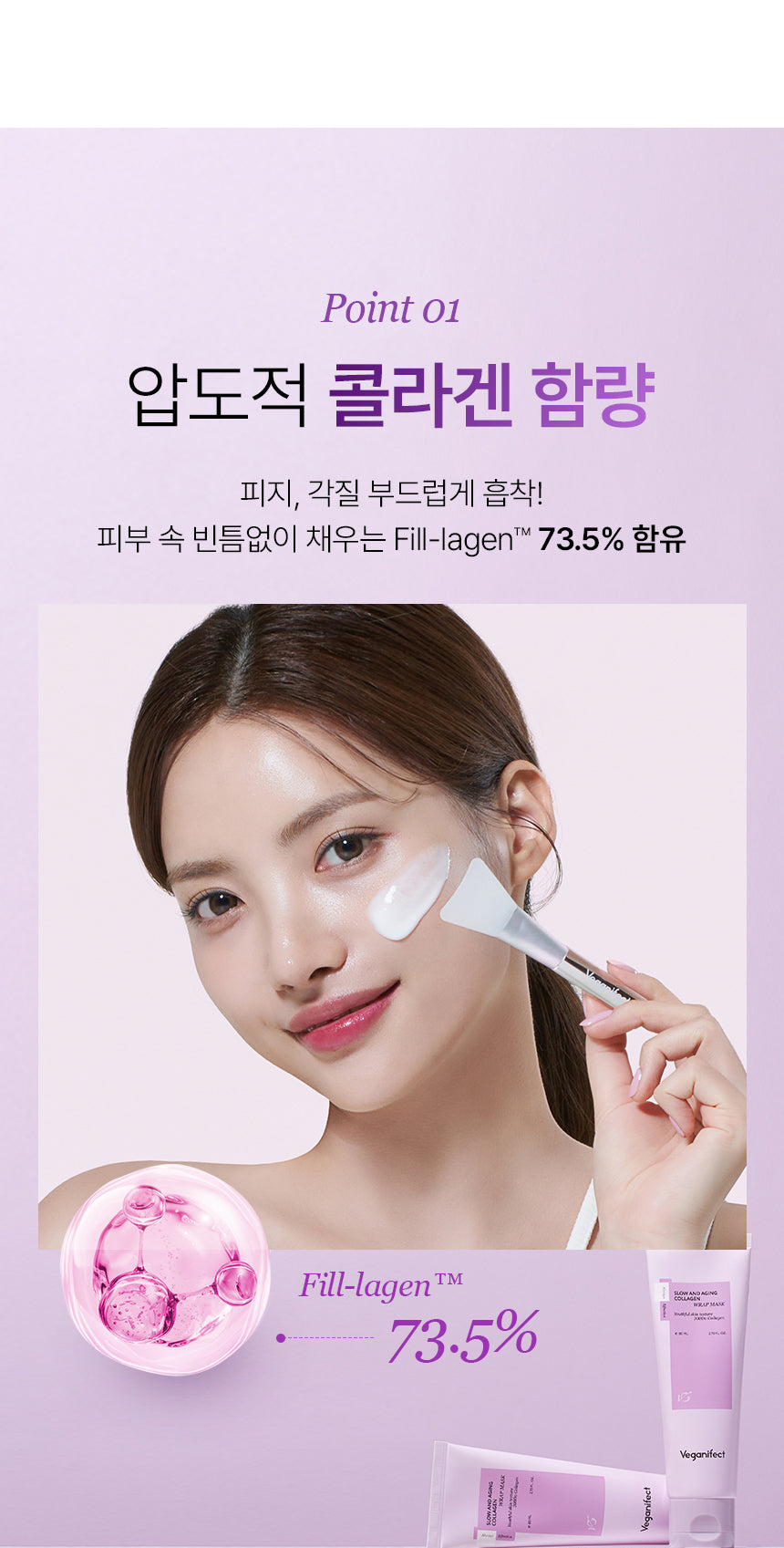 - Fill-lagen™ with 73.5% collagen content works to gently absorb sebum and dead skin cells, filling in gaps to provide smooth, radiant skin.