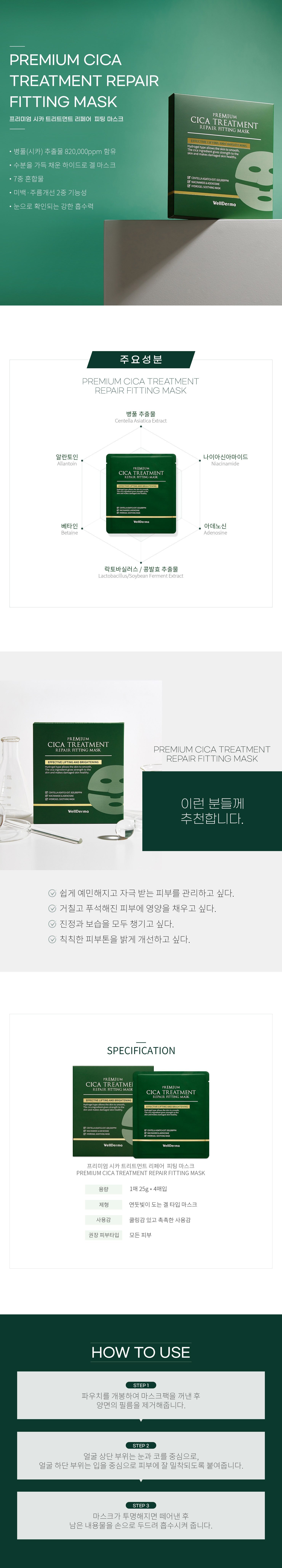 WellDerma Premium Cica Treatment Repair Fitting Mask 25g*4packs