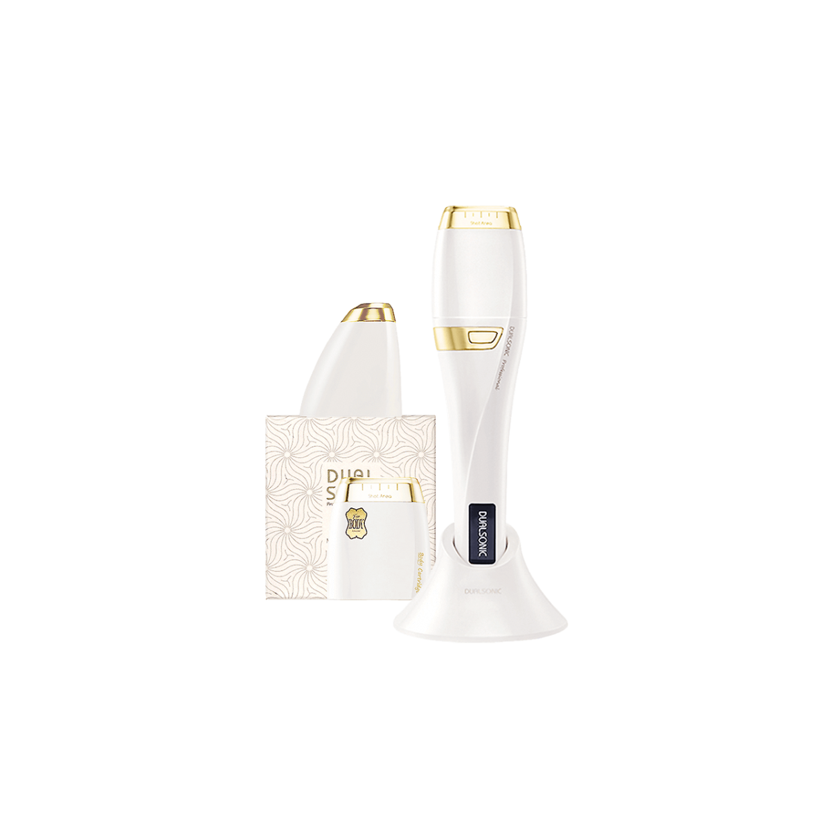 Achieve professional-grade skin elasticity care from the comfort of your home with DUALSONIC Professional Set. Enjoy powerful premium-focused ultrasound home care with just one 15-minute session every two weeks for visible results.