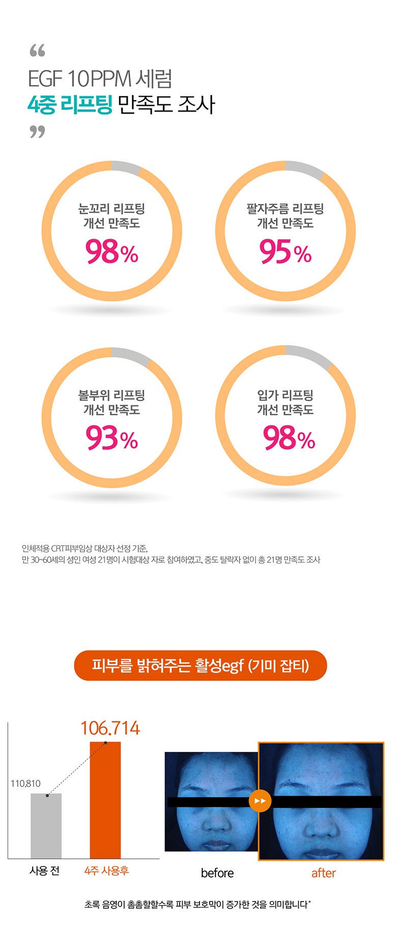 Formulated to contain the legal maximum concentration of EGF at 10ppm, as authorized by Korea’s Ministry of Food and Drug Safety, this serum optimizes skin elasticity and firmness while targeting visible signs of aging.