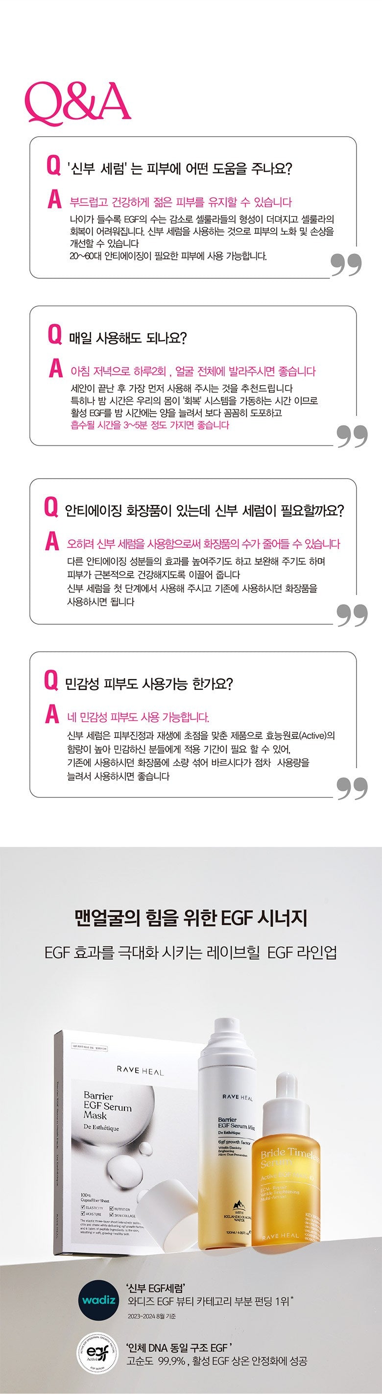 The RAVE HEAL Bride Timeless Serum is a high-performance product crafted to rejuvenate your skin to its optimal state. Infused with premium active EGF (Epidermal Growth Factor) at the highest permissible concentration, this serum works to enhance skin elasticity and diminish spots and blemishes, making it a must-have for achieving a youthful, radiant complexion.