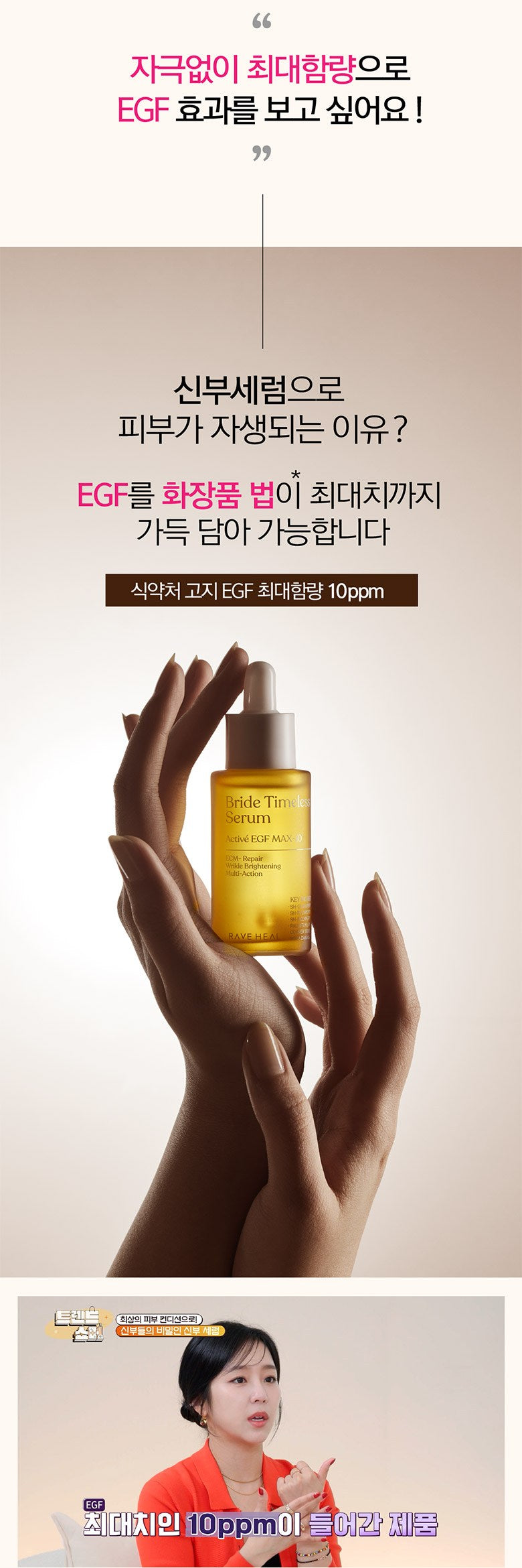 Originally reserved for premium spas and dermatological treatments, this serum was a go-to solution in bridal skincare packages. The high-purity, 99.9% active EGF used in this serum has a market value equivalent to 1 billion KRW per gram, demonstrating its unparalleled potency and exclusivity.