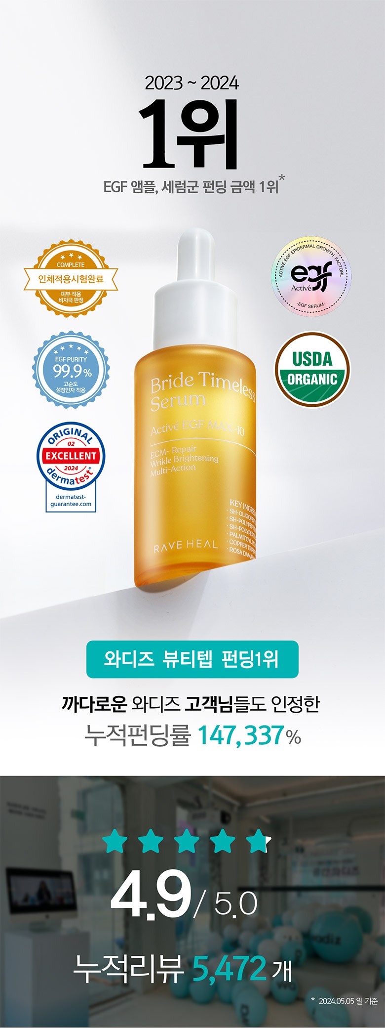 最近、RAVE HEAL Bride Timeless Serumを使ってみましたが、その効果に驚きました。このセラムはEpidermal Growth Factor(EGF)が高濃度で含まれており、本当に特別な商品です。使用するたびに、肌のハリと明るさが増していく感覚があります。気になるシミも少しずつ目立たなくなったようにも感じます。また、高品質成分による深層ケアのおかげで、自宅なのにスパトリートメントを受けているかのよう!大切なお日柄やイベント前には、このセラムなしでは考えられません。一生懸命研修して良かったと心から思わせてくれる逸品でした。
