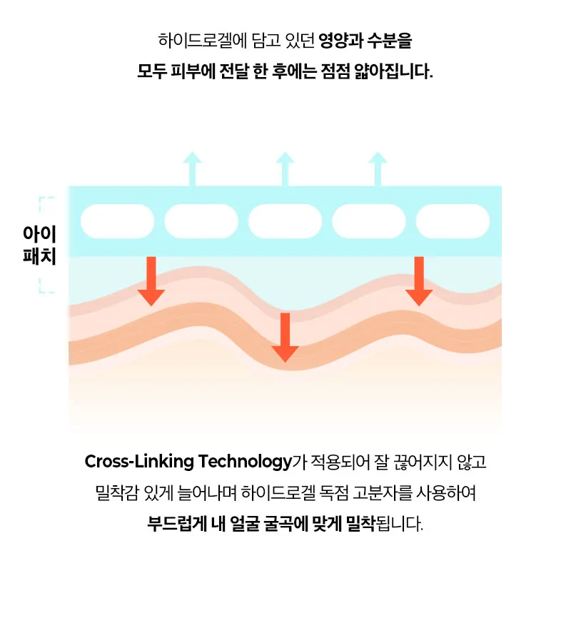 A cross-linking hydrogel polymer provides a perfect skin fit and gradually thins as it delivers nutrients and moisture to the skin. -