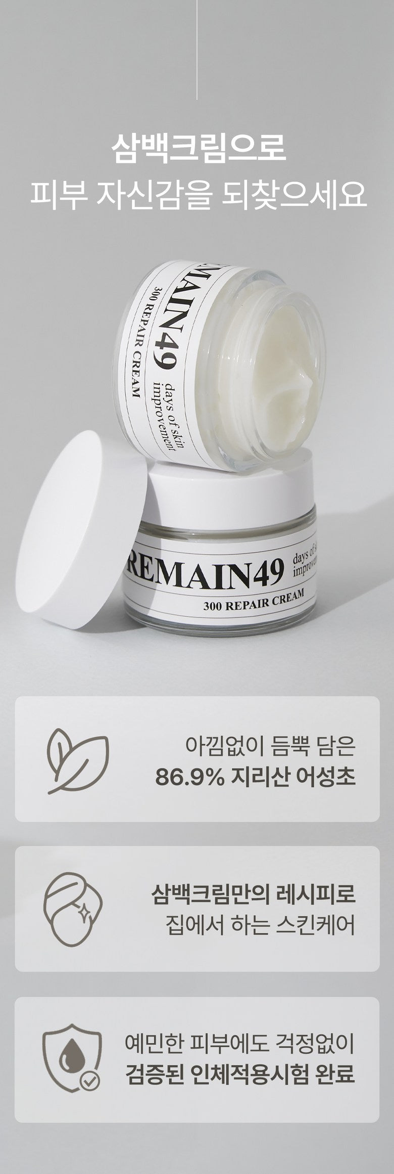 Experience the nourishing and soothing benefits of REMAIN49 300 Repair Cream, designed to provide comprehensive care for your skin all year round.