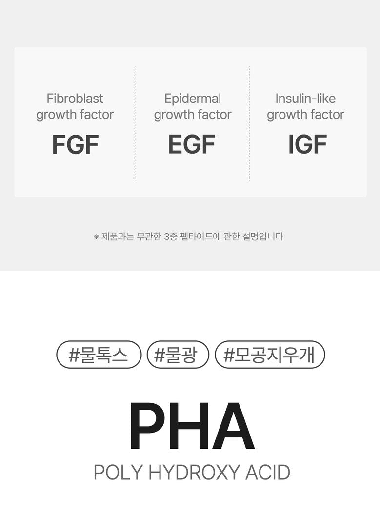 This formula features three powerful peptides (Fibroblast Growth Factor, Epidermal Growth Factor, Insulin-like Growth Factor) to promote skin regeneration and boost elasticity. -