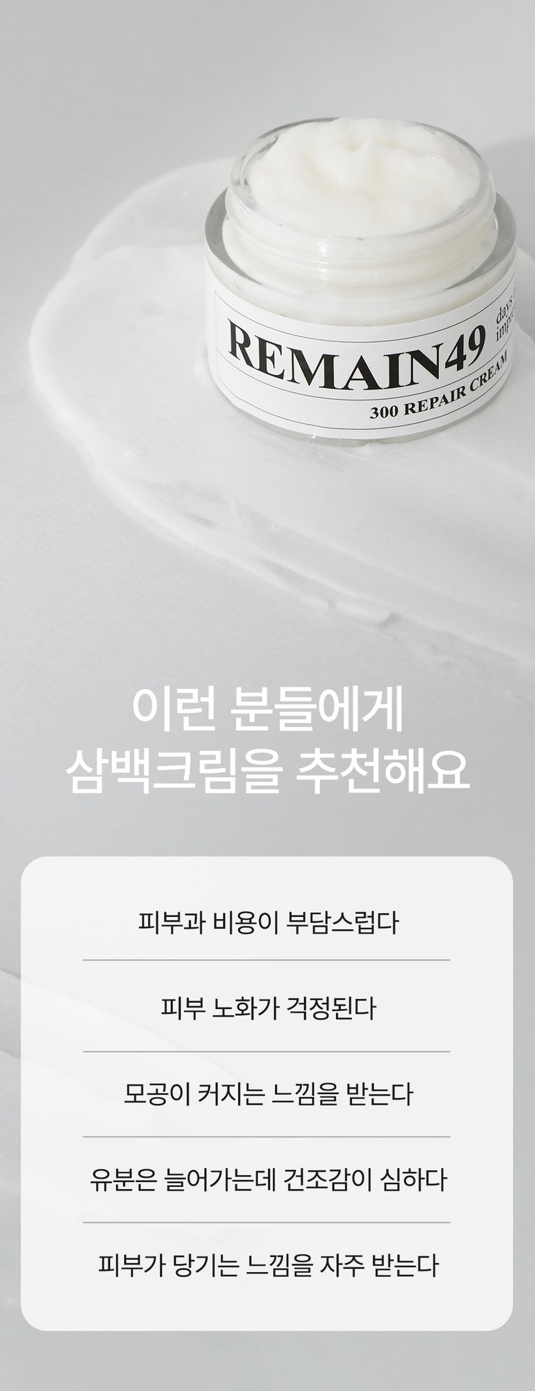 Experience the nourishing and soothing benefits of REMAIN49 300 Repair Cream, designed to provide comprehensive care for your skin all year round.