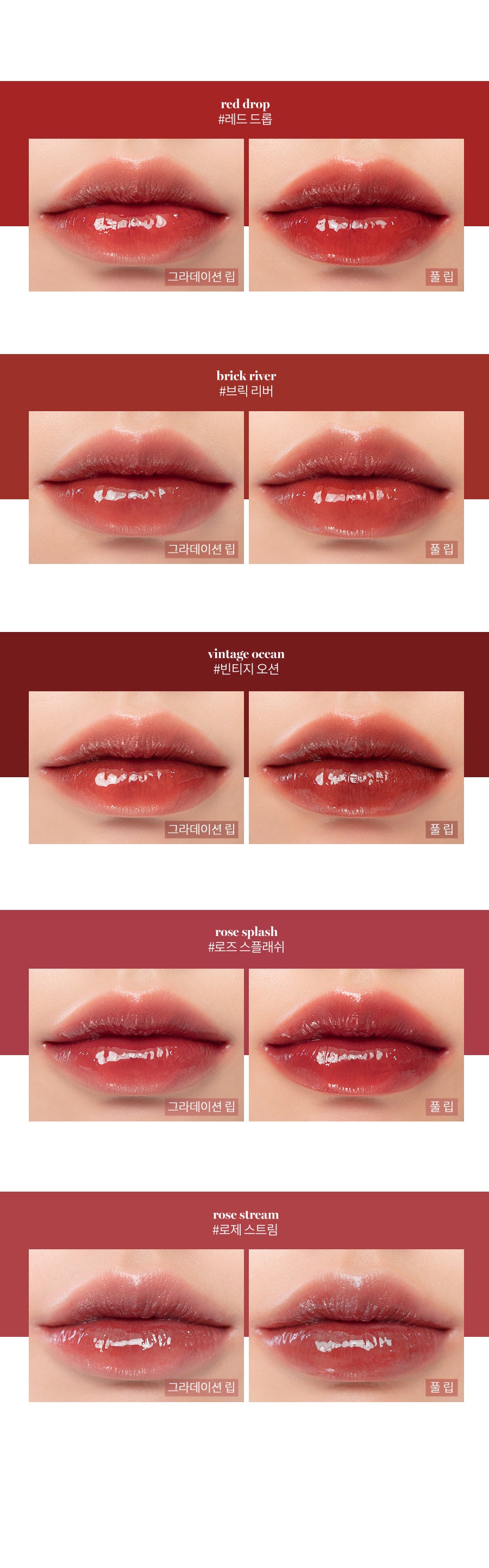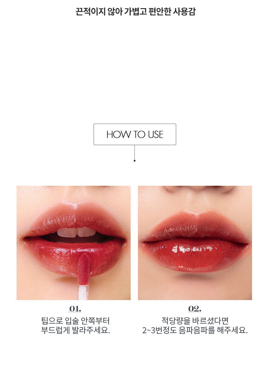 The rom&nd Glasting Water Tint is an absolute game changer for achieving that perfect glossy lip look. I was particularly impressed with its incredibly absorbent formula which keeps the color vibrant throughout my busy day without needing constant touch-ups. Unlike other tints I’ve tried, this one truly lives up to being lightweight and non-sticky; it feels moisturizing and refreshing on my lips instead of drying them out like many traditional pigments do. The clear gloss finish is exactly what I wanted—it’s subtle yet stunning, making it versatile for both casual outings and more elegant events.