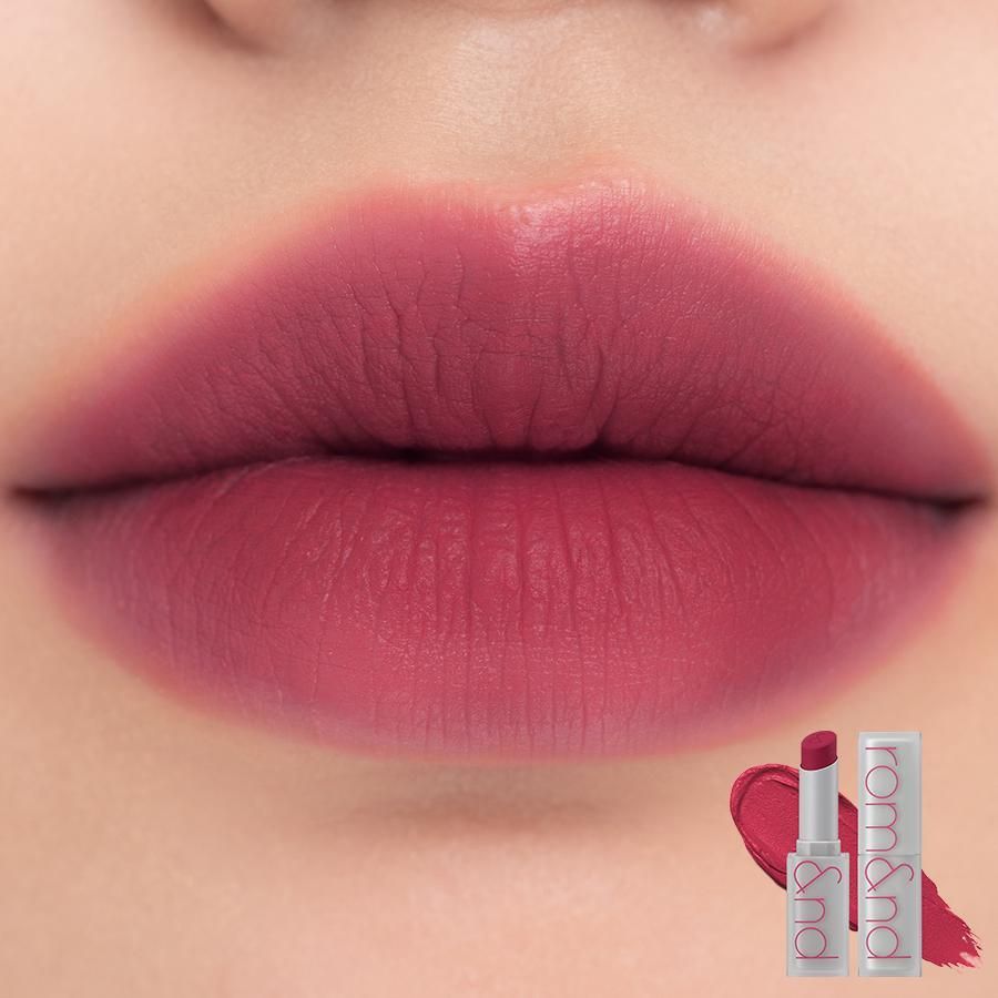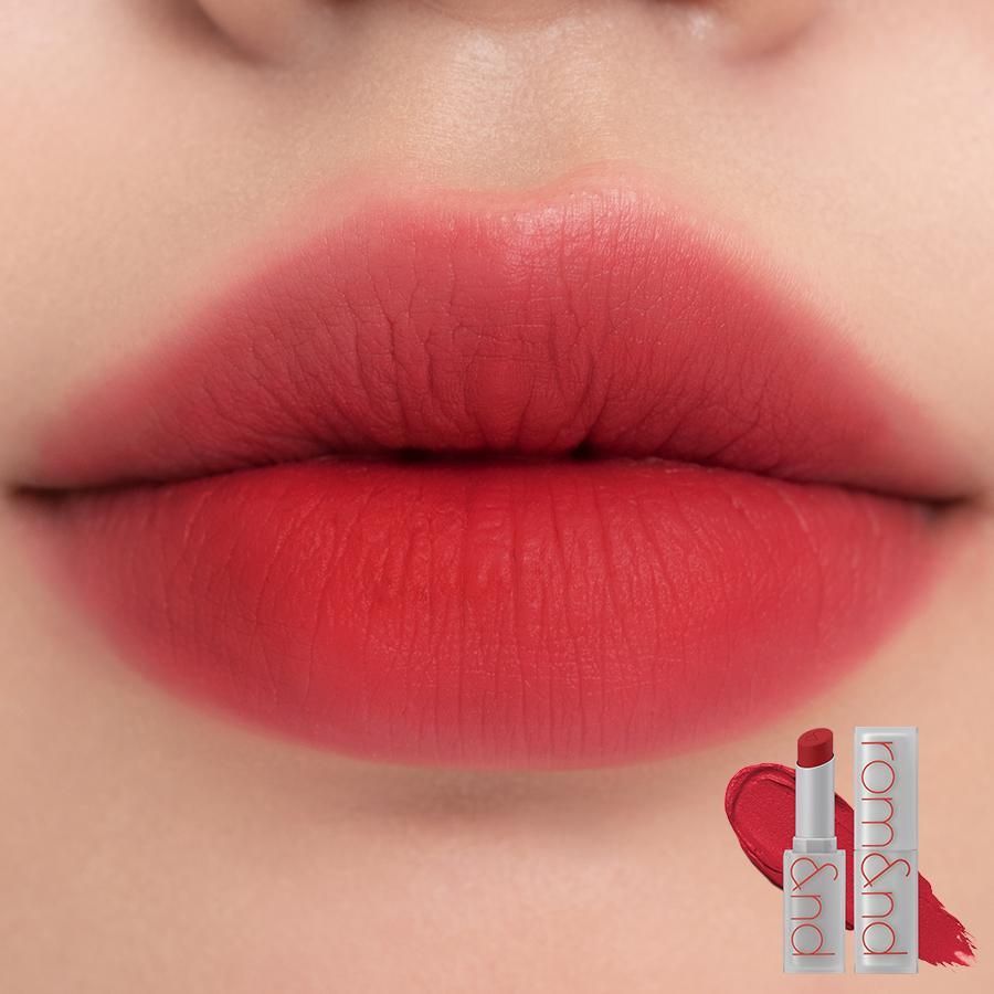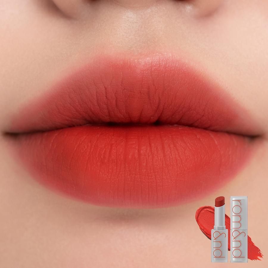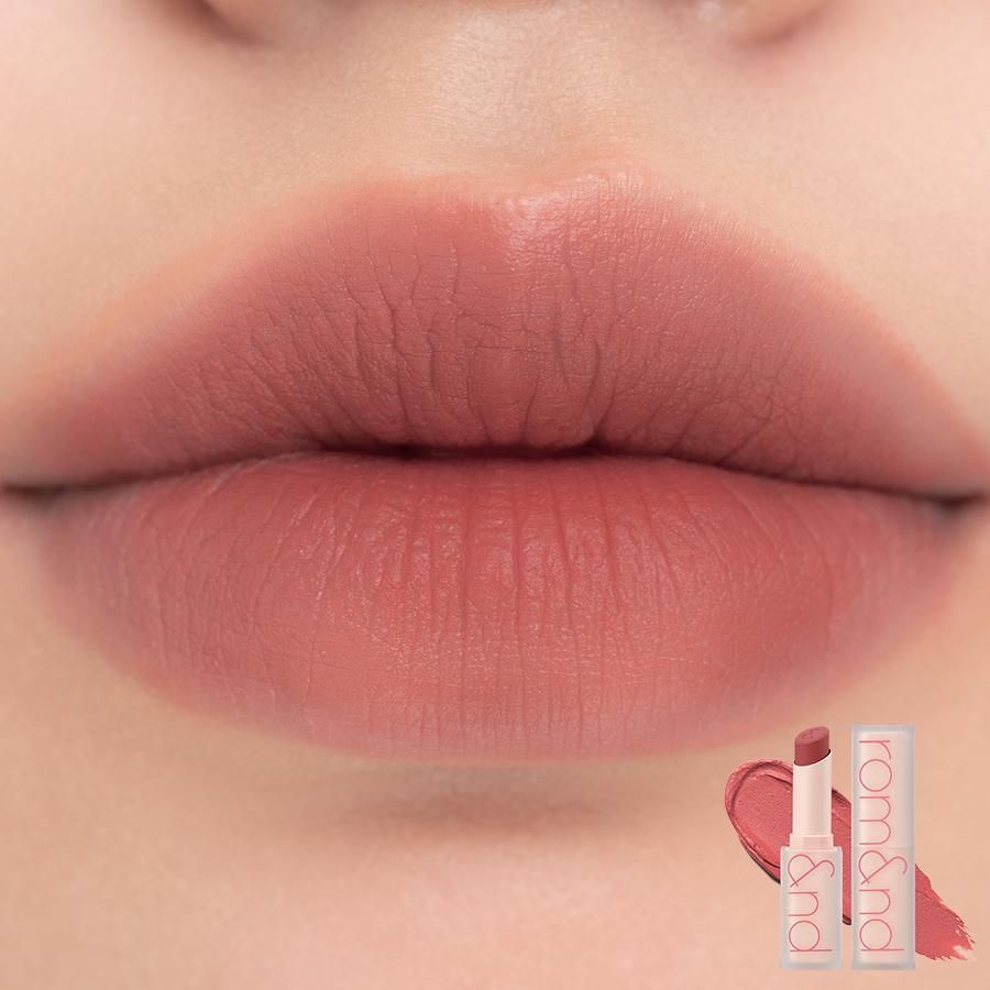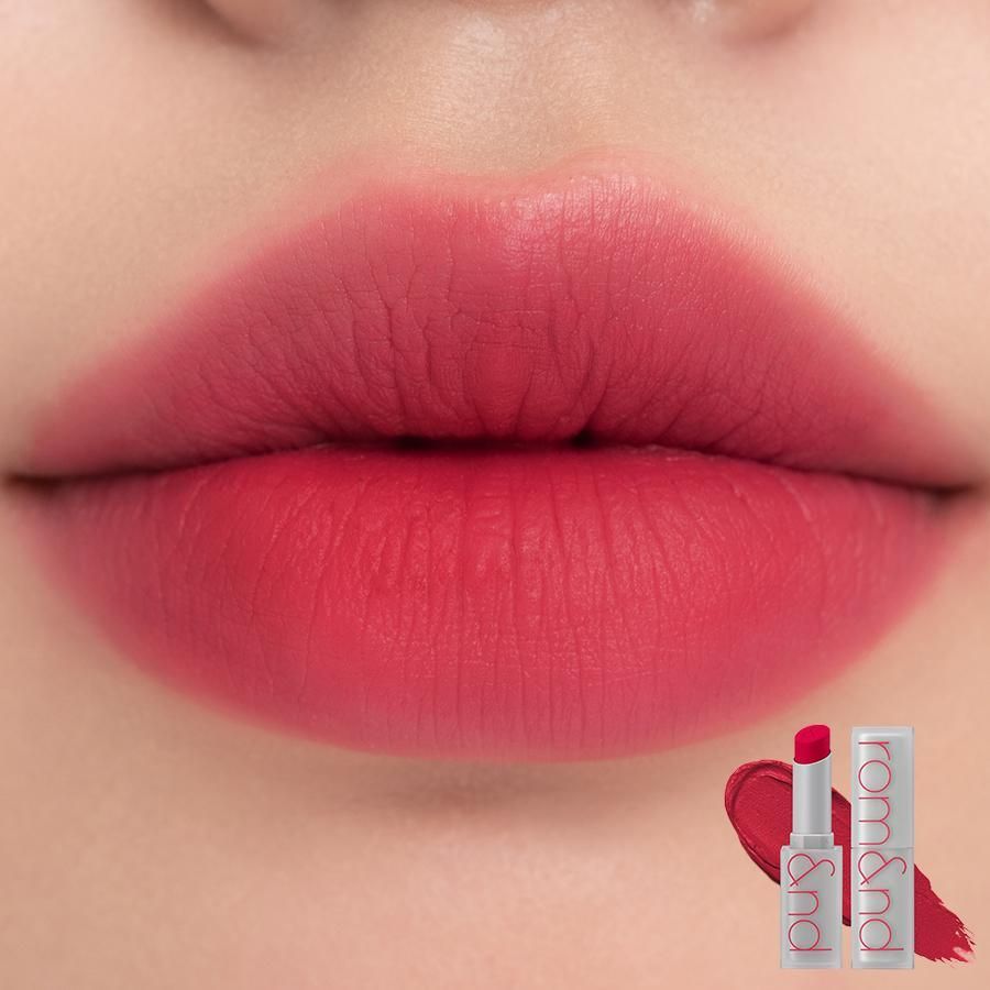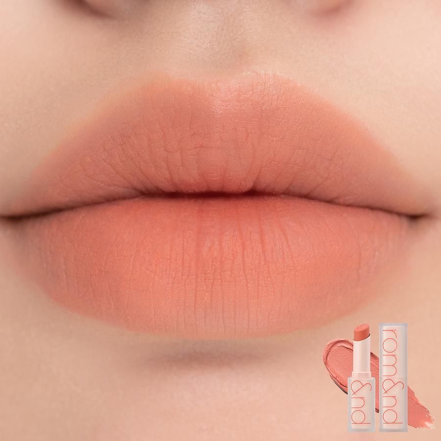 Soft, velvety matte lipstick by Rom&nd makes your lips look supple and lush. Smooth and velvety, it feels comfortable to wear all day long.