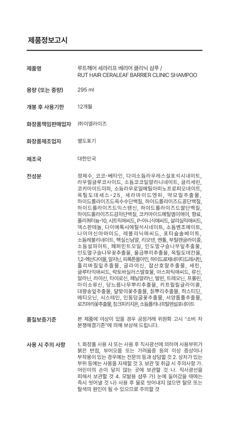 RU:T HAIR Barrier Cinic Ceraleaf Shampoo 295ml