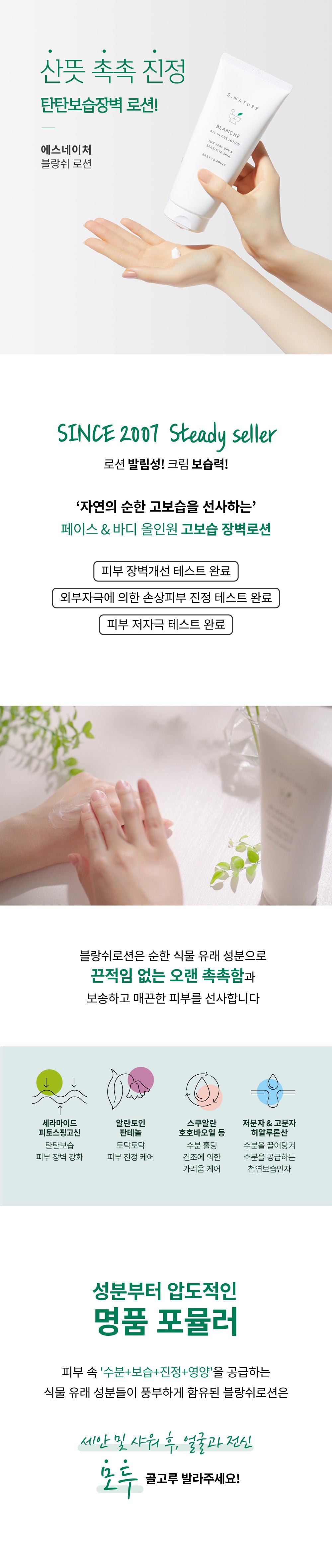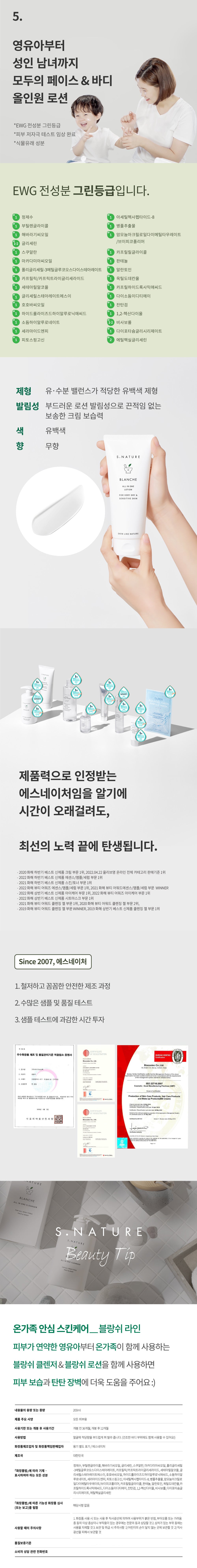 I recently purchased the S.NATURE Blanche Lotion for my family, and it has been a game-changer. The combination of ceramide and phytosphingosine really makes a difference in moisturizing our skin without any greasy feeling left behind. My daughter, who has sensitive skin, experienced no irritation at all after using this lotion daily. I appreciate that it’s hypoallergenic, making it perfect for every member of our family—from myself to my infant. It also absorbs quickly while leaving a soft texture on the skin that lasts throughout the day.