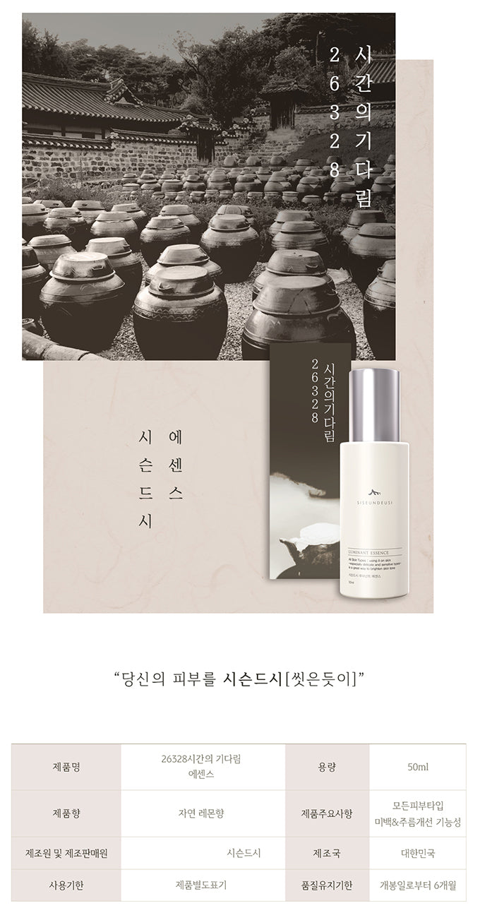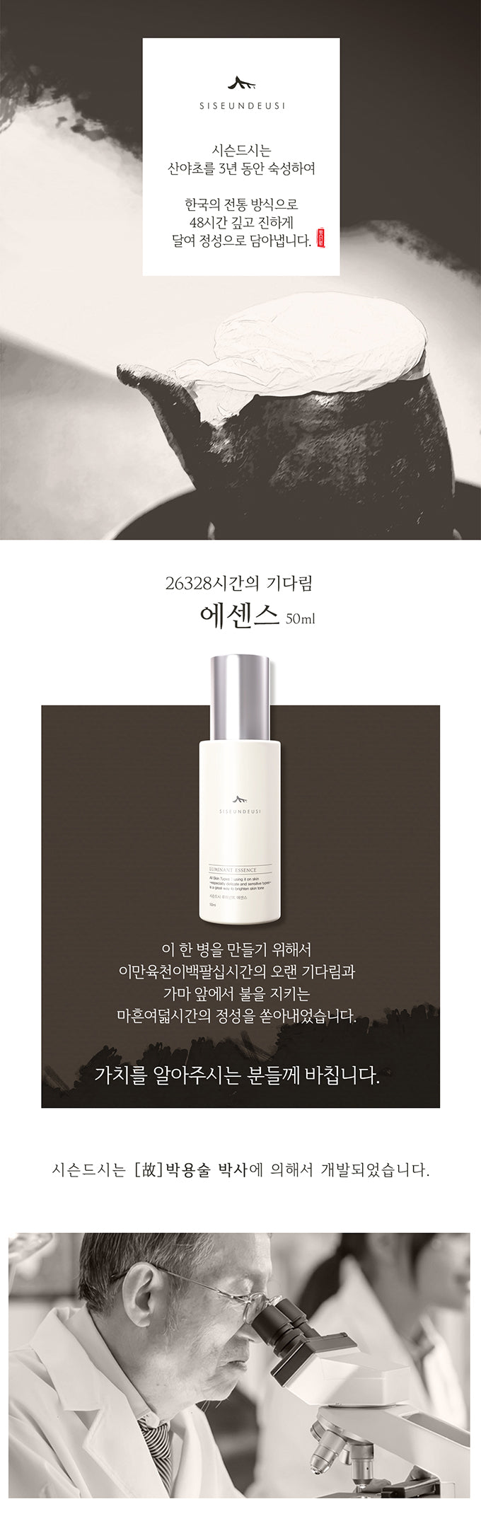 SISEUNDEUSI Essence embodies the spirit of traditional Korean skincare. This remarkable product is born from an extensive process involving the fermentation of wild herbs for 26,328 hours, followed by a 48-hour intensive boiling phase. The commitment to maintaining the kiln fire throughout this period highlights our dedication to delivering products that resonate with those who appreciate genuine craftsmanship.