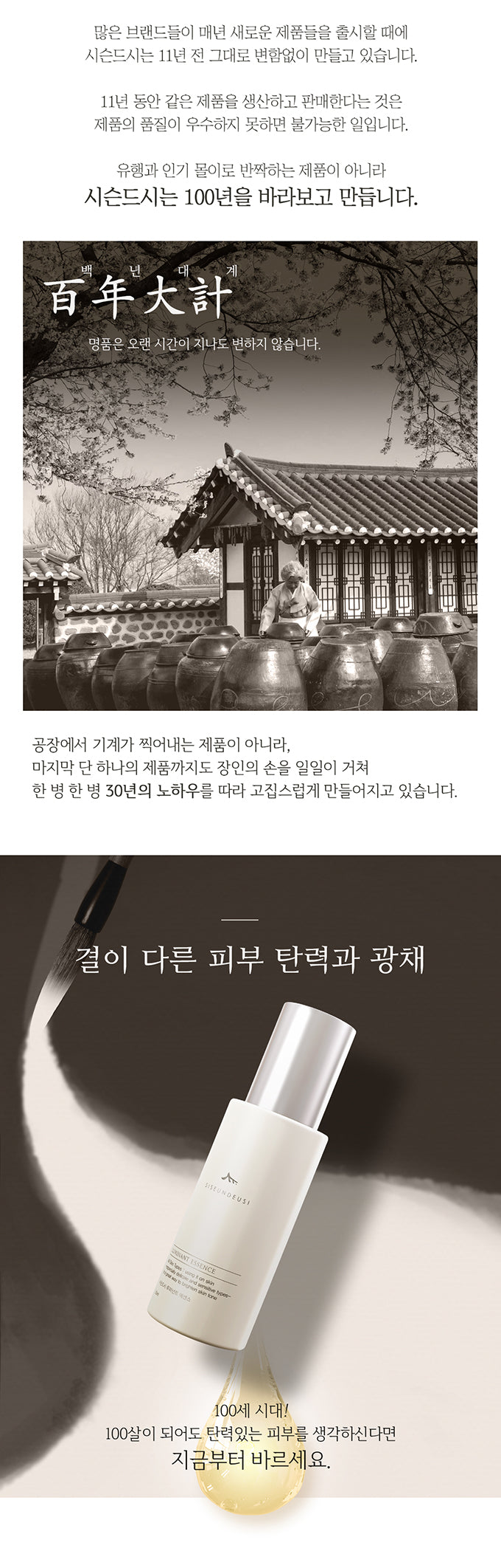 Developed by Dr. Park Yong-sul, the key ingredient, Jeongsu Bidan, is the result of 30 years of research. We have been crafting this premium lotion for over a decade, demonstrating our unwavering dedication to excellence. SISEUNDEUSI is crafted with a vision that spans a century.